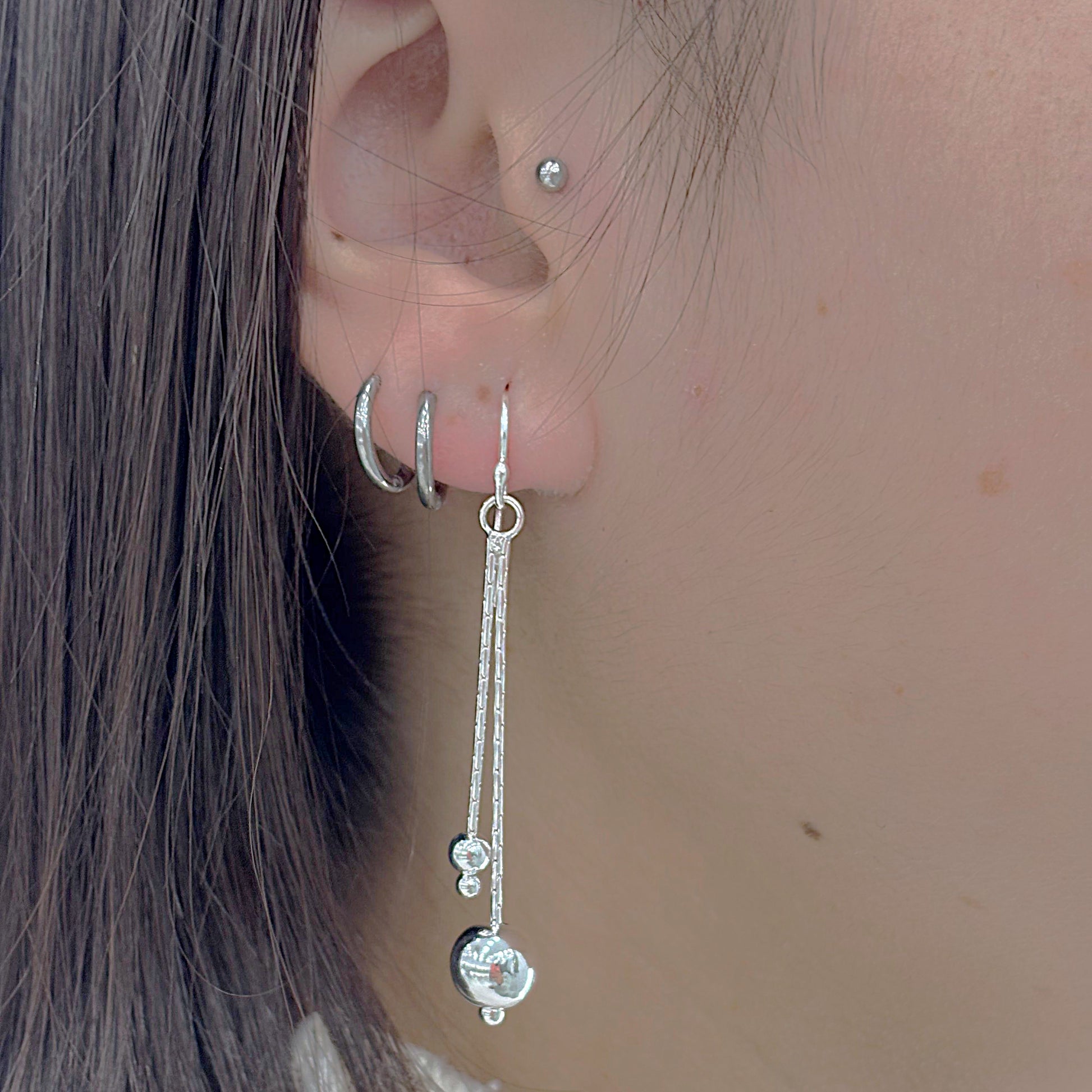Pendientes lagos hechos en Plata 925 con detalles de bolas. Largo 5,5 cm Peso: 5,31gr