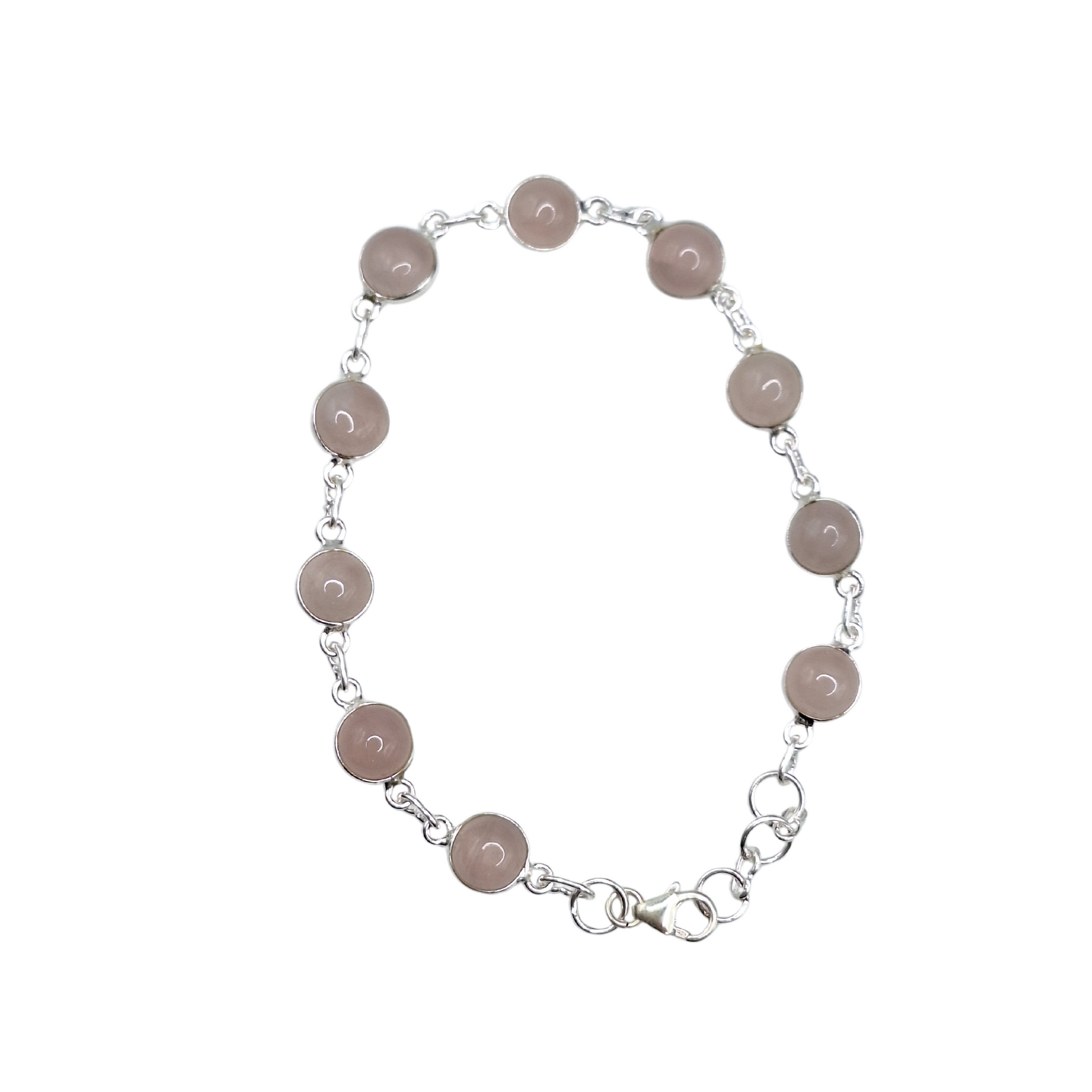 Pulsera de Plata con cuarzo rosa, Tamaño: 20x0,8 cm Peso:6,50gr.