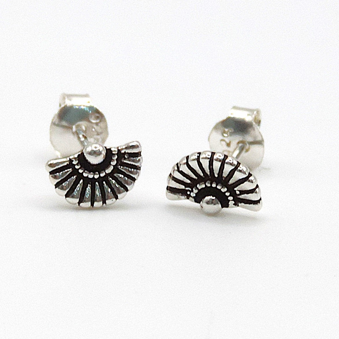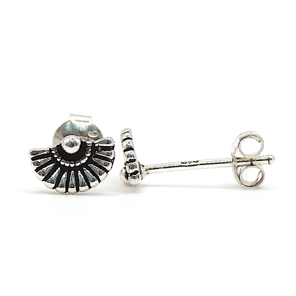 Pendiente miniatura hecho en plata 925 con diseño de abanico. Ideal para combinar en agujeros secundarios por su tamaño.