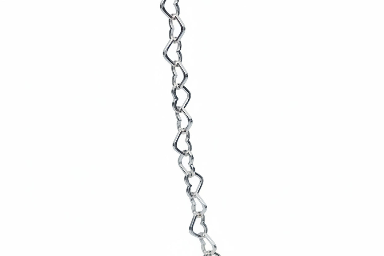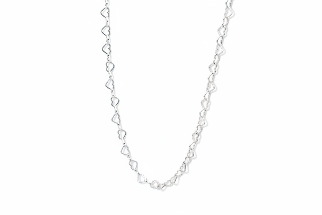 Cadena de plata925 hecha con eslabones en forma de corazón.