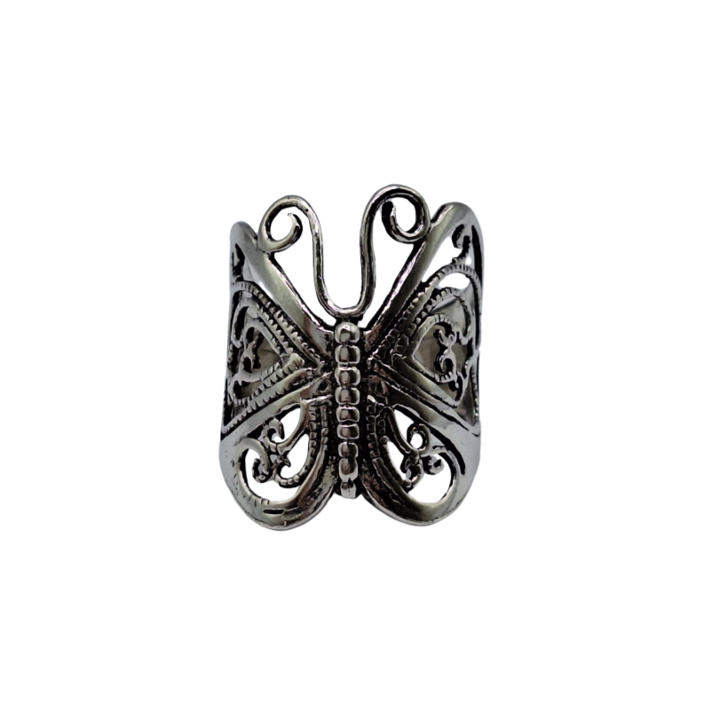 Descubre nuestro anillo de Plata 925 con diseño de mariposa. Tamaño: 25mm alto. Peso: 5,70 gr. Disponible en todas las tallas.