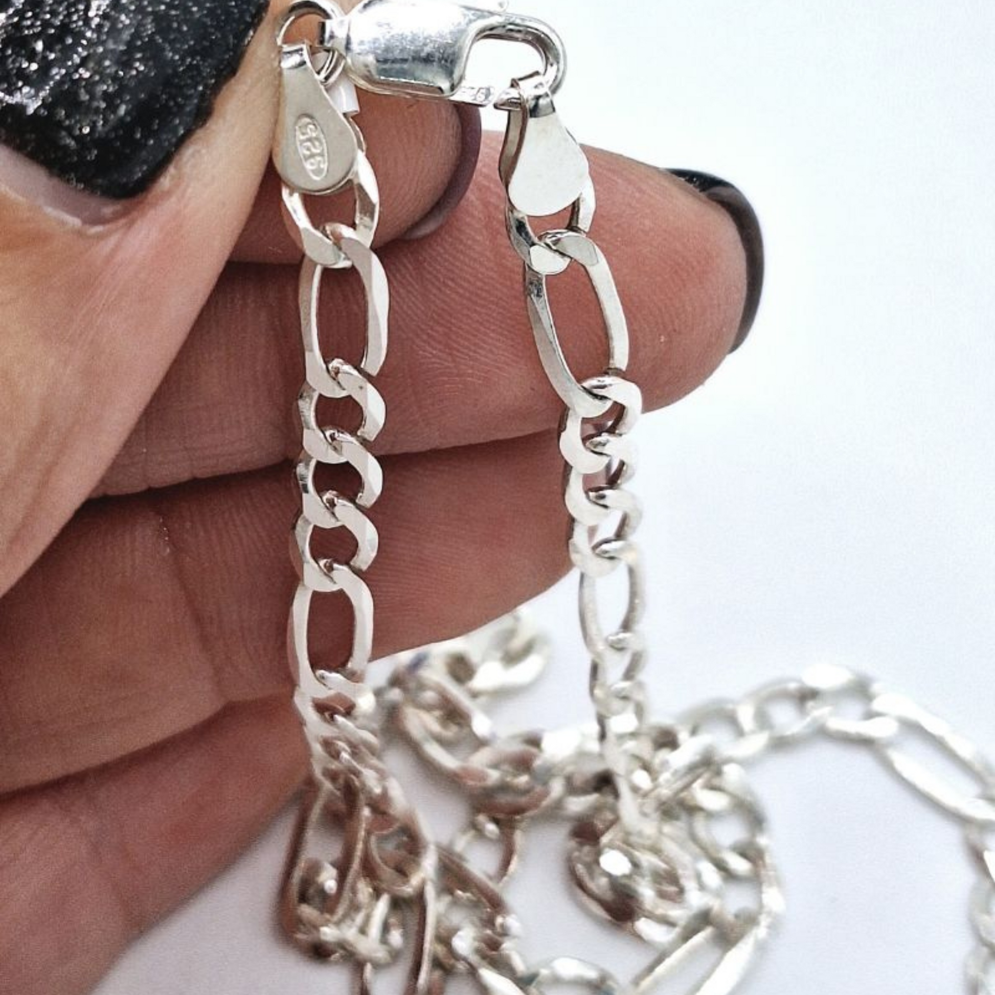 Cadena hecha en Plata de Ley 925. Los eslabones de la cadena forman un cuadrado. que se puede ver en los detalles de la foto. pESO:3,05 GR.