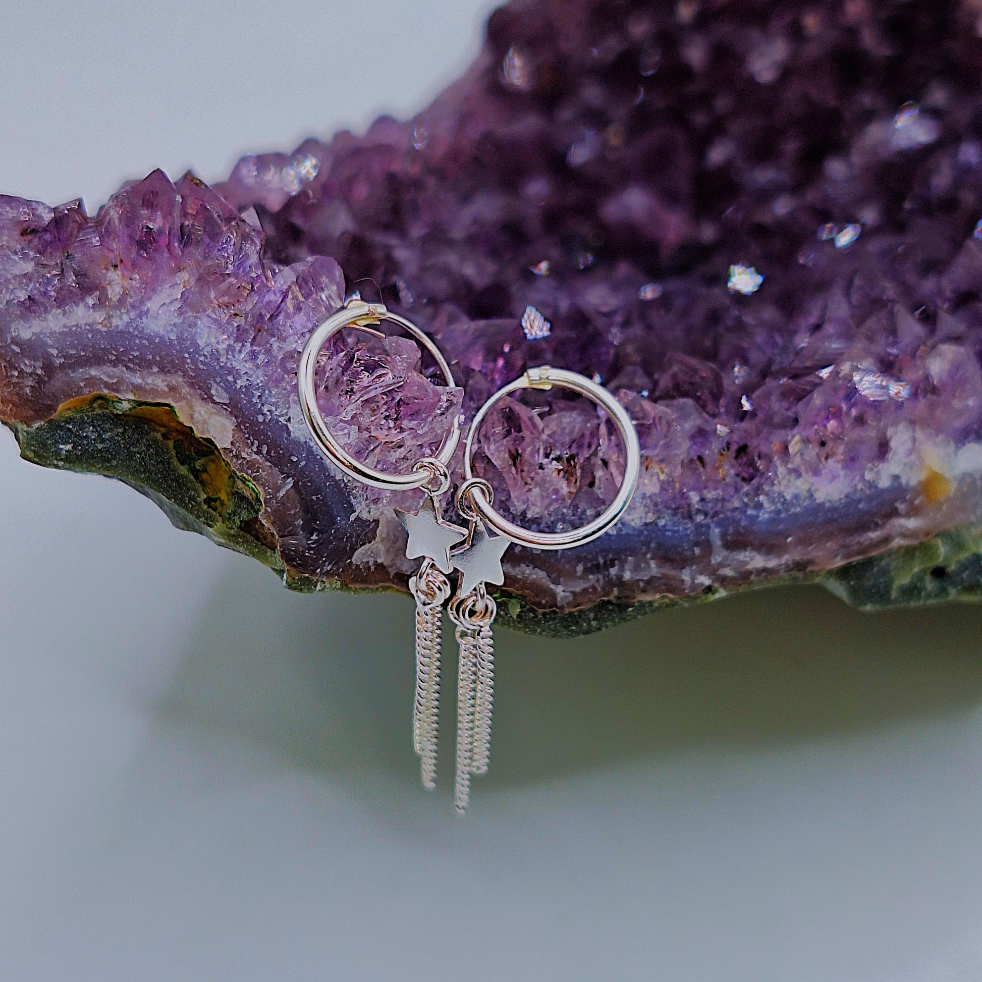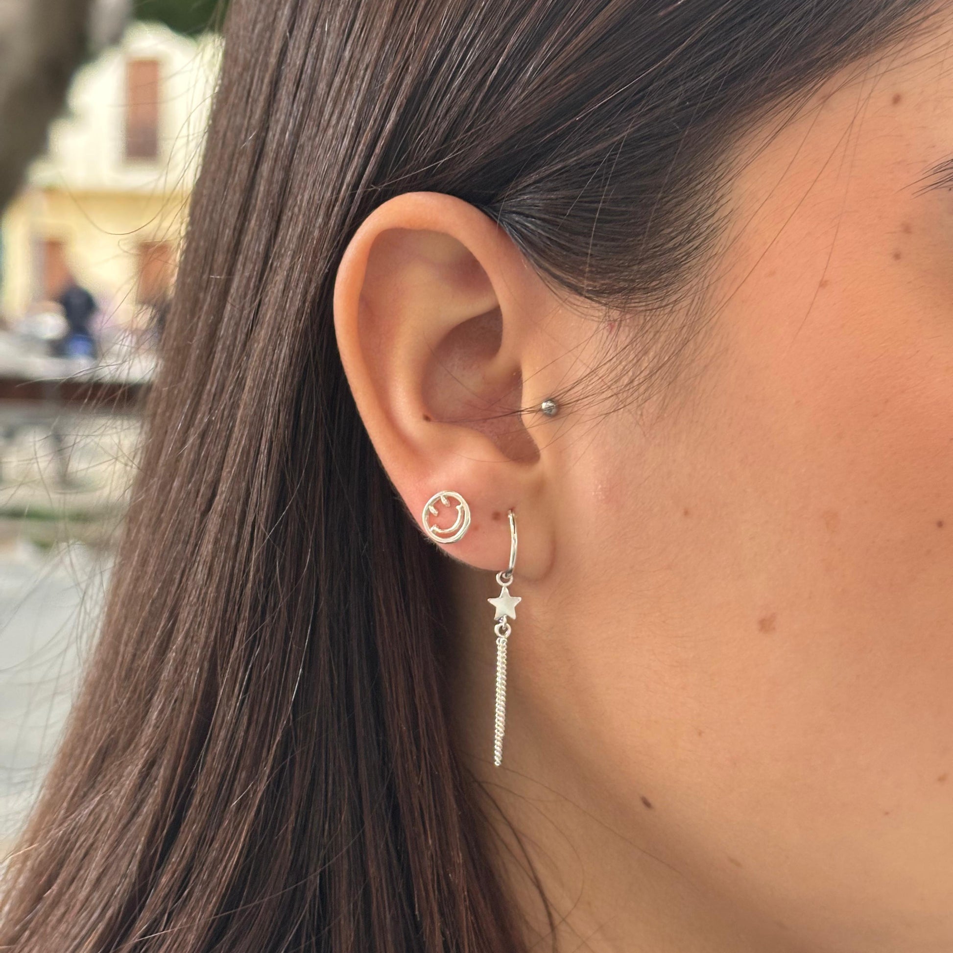 Pendientes de Plata925 de Aro con Charm de Estrella y cadena que cuelga dando un toque rockero.