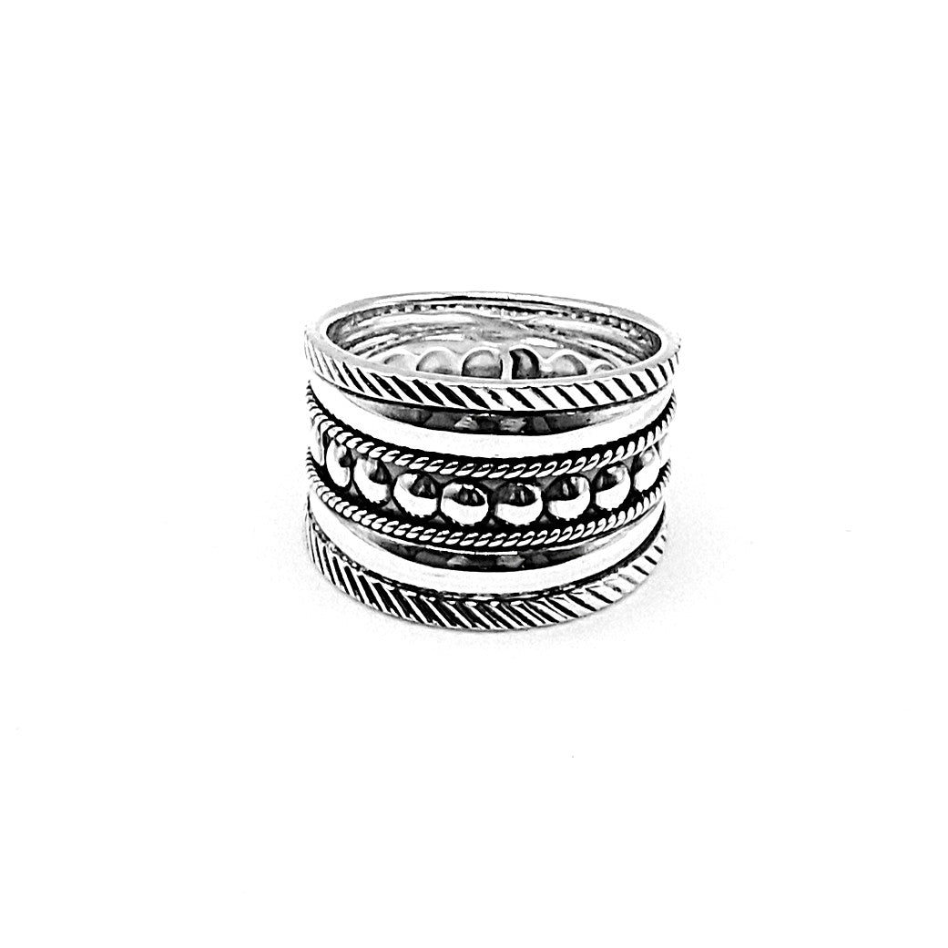 Anillo hecho en Plata de Lay 925 con diseño de tubo con grabado. Un diseño que inspira detalles balineses y que simula plata vieja. Ideal para dedo índice o dedo pulgar.