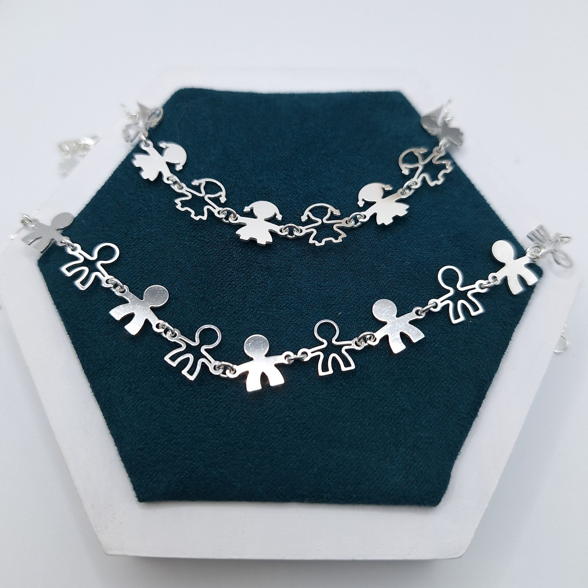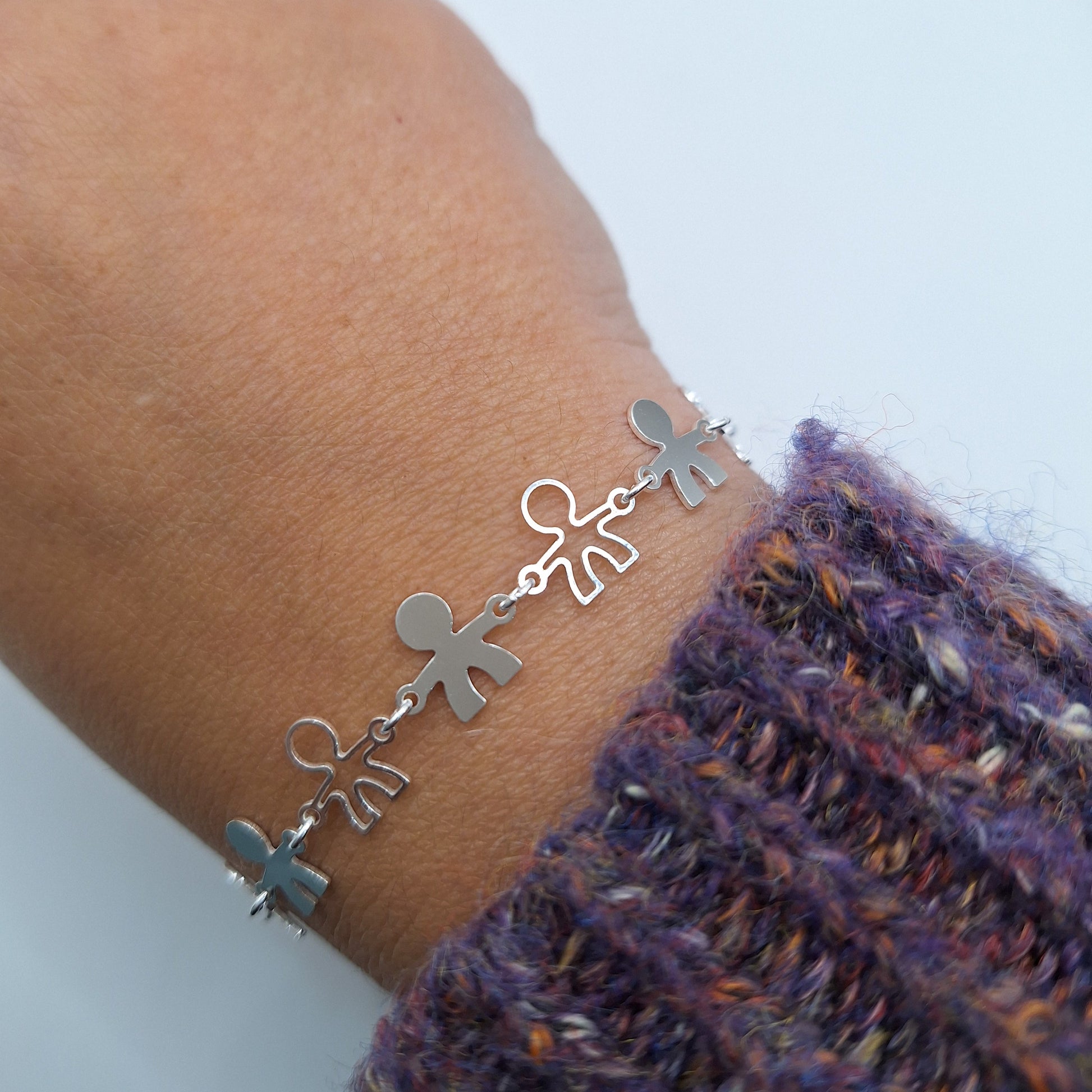 pulsera de plata 925. Niños y niñas entrelazados a elegir. Largo; 18cm + 2 extensión