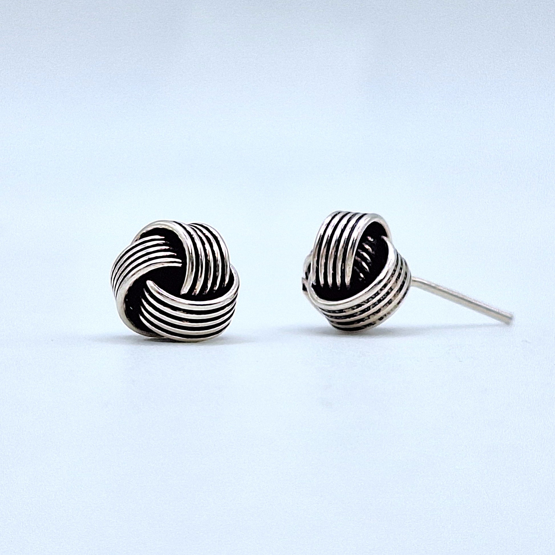 Pendientes de Plata 925 con diseño de nudo redondo. Disponible en Plata vieja y plata lisa. Diametro: 8mm.
