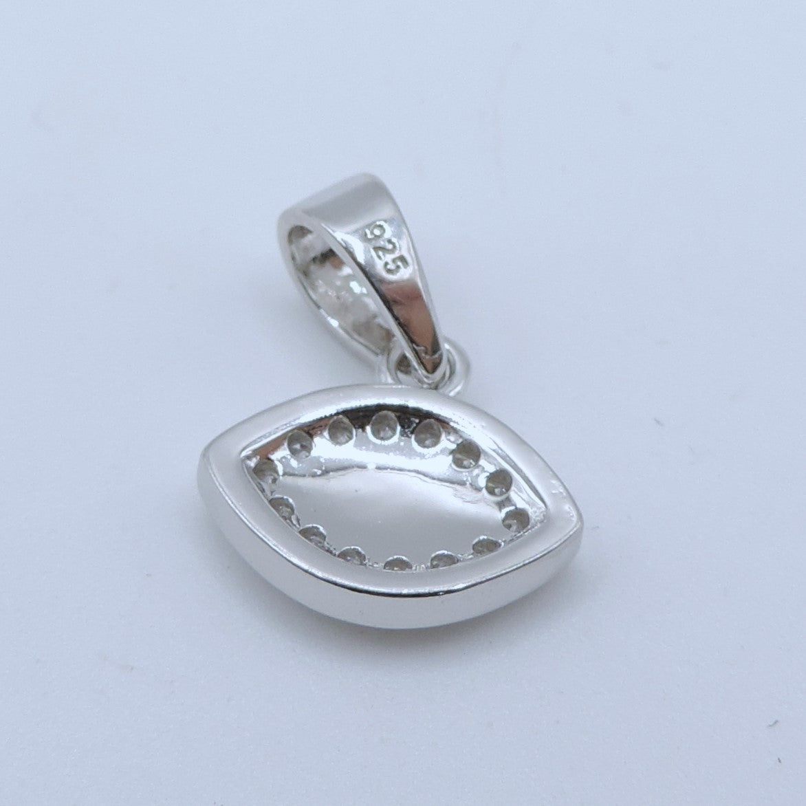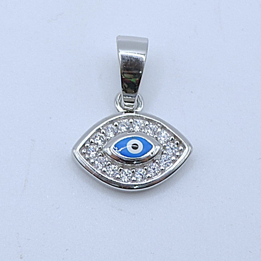 Colgante de Plata 925 con circonitas engarzadas con el metodo de micropavé. Diseño de ojo turco. Protector contra malas energias y mal de ojo. Tamaño: 1,5cm Peso:1,35gr.
