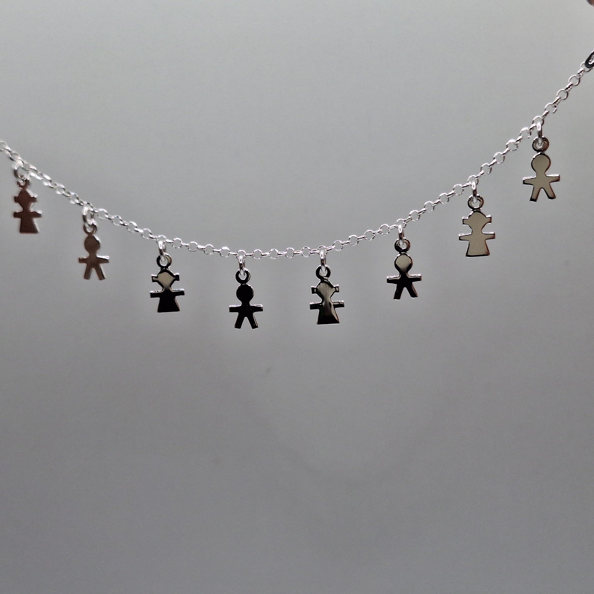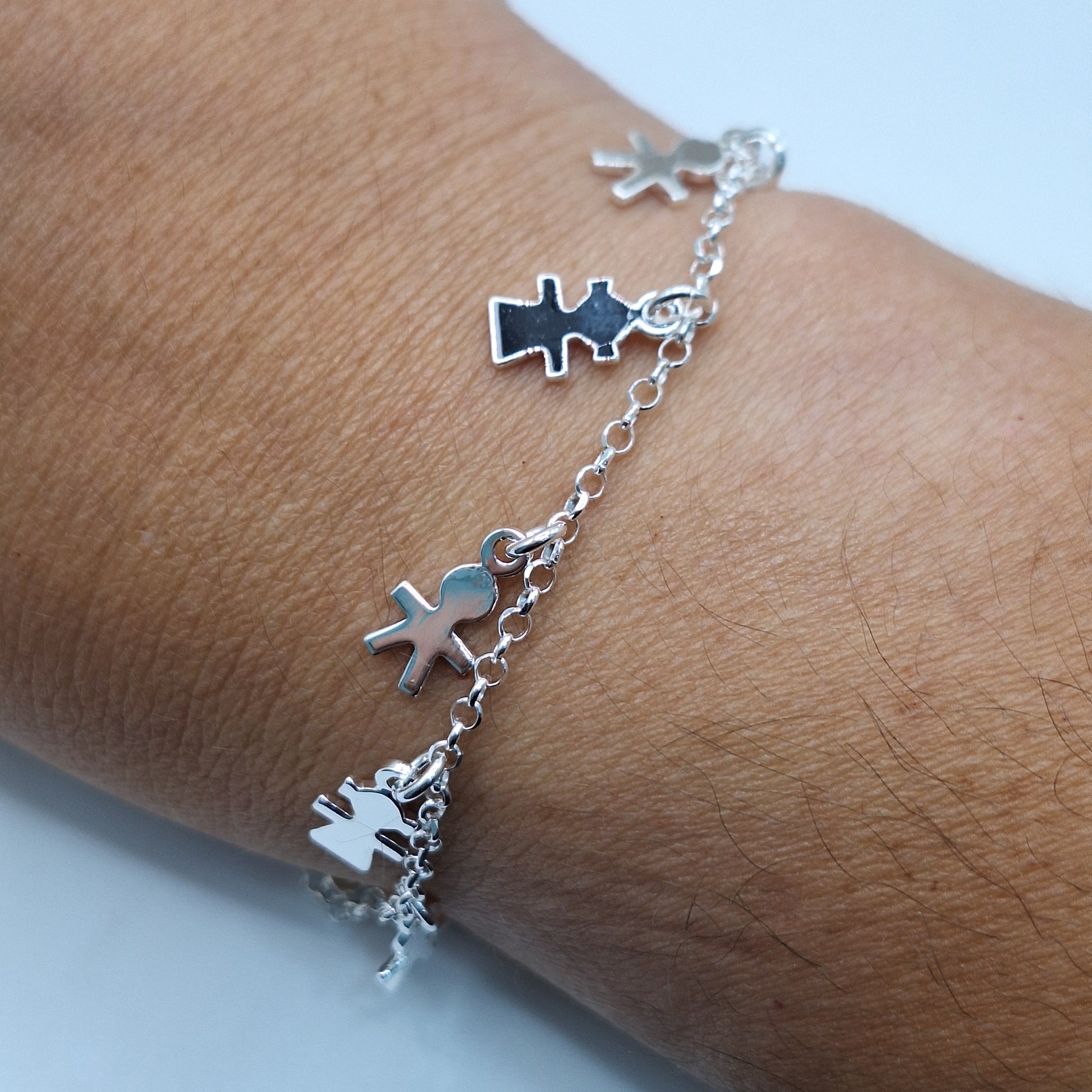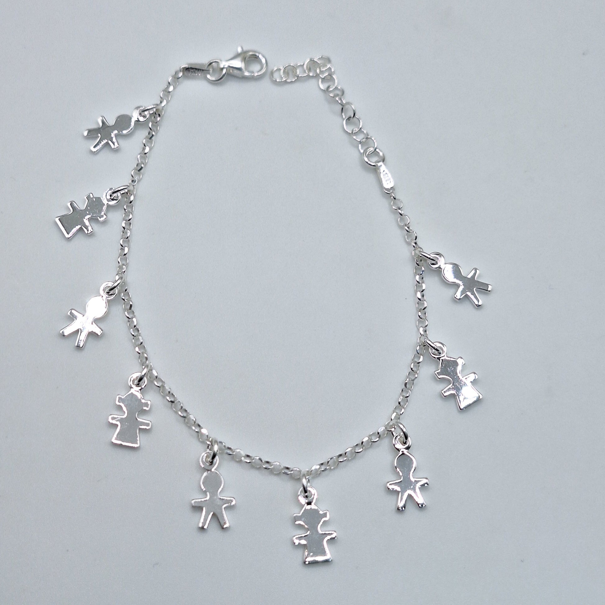 pulsera de plata 925 . Diseño de eslabones con charm de niños y niñas repartidos por todo lo largo de la pulsera. Largo: 17cm + 2extension. Peso: 5,61gr