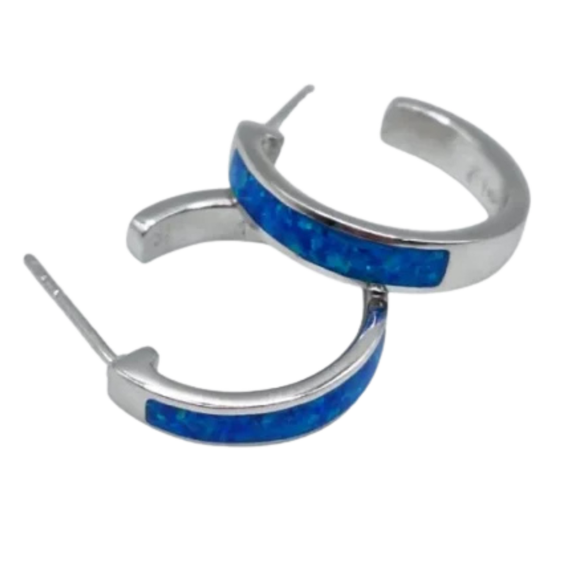 Hecho en Plata de Ley con piedra óplalo Azul. Es una Argolla de Plata 925 decorada con piedra óplao azul. Tamaño: 2x2cm Peso: 5,22gr. El ópalo azul es una piedra preciosa conocida por su belleza y sus colores iridiscentes. Aquí te dejo una descripción detallada de esta piedra:
