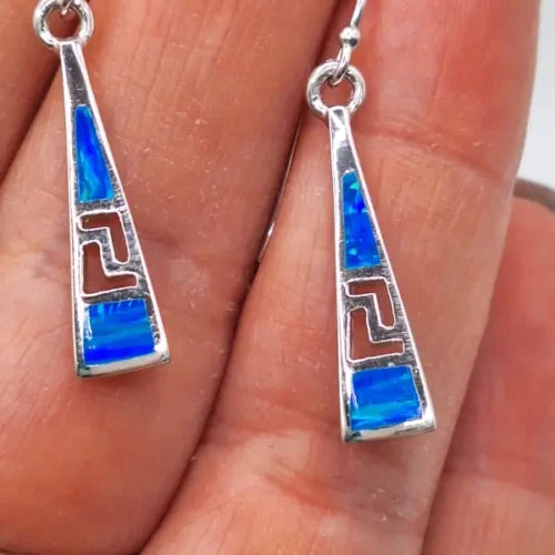Hecho en Plata de Ley con piedra óplalo Azul. Tamaño: 2,3x6cm Peso: 3,13gr. El ópalo azul es una piedra preciosa conocida por su belleza y sus colores iridiscentes. Aquí te dejo una descripción detallada de esta piedra: