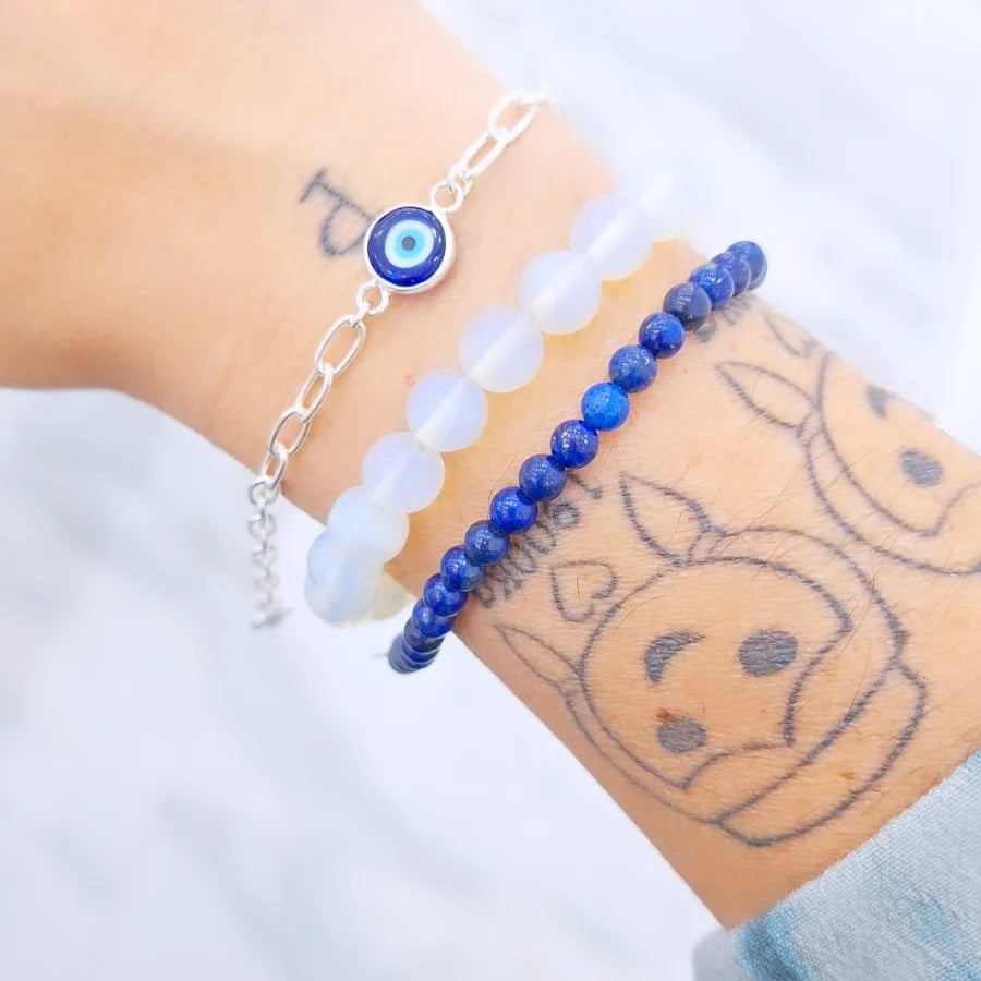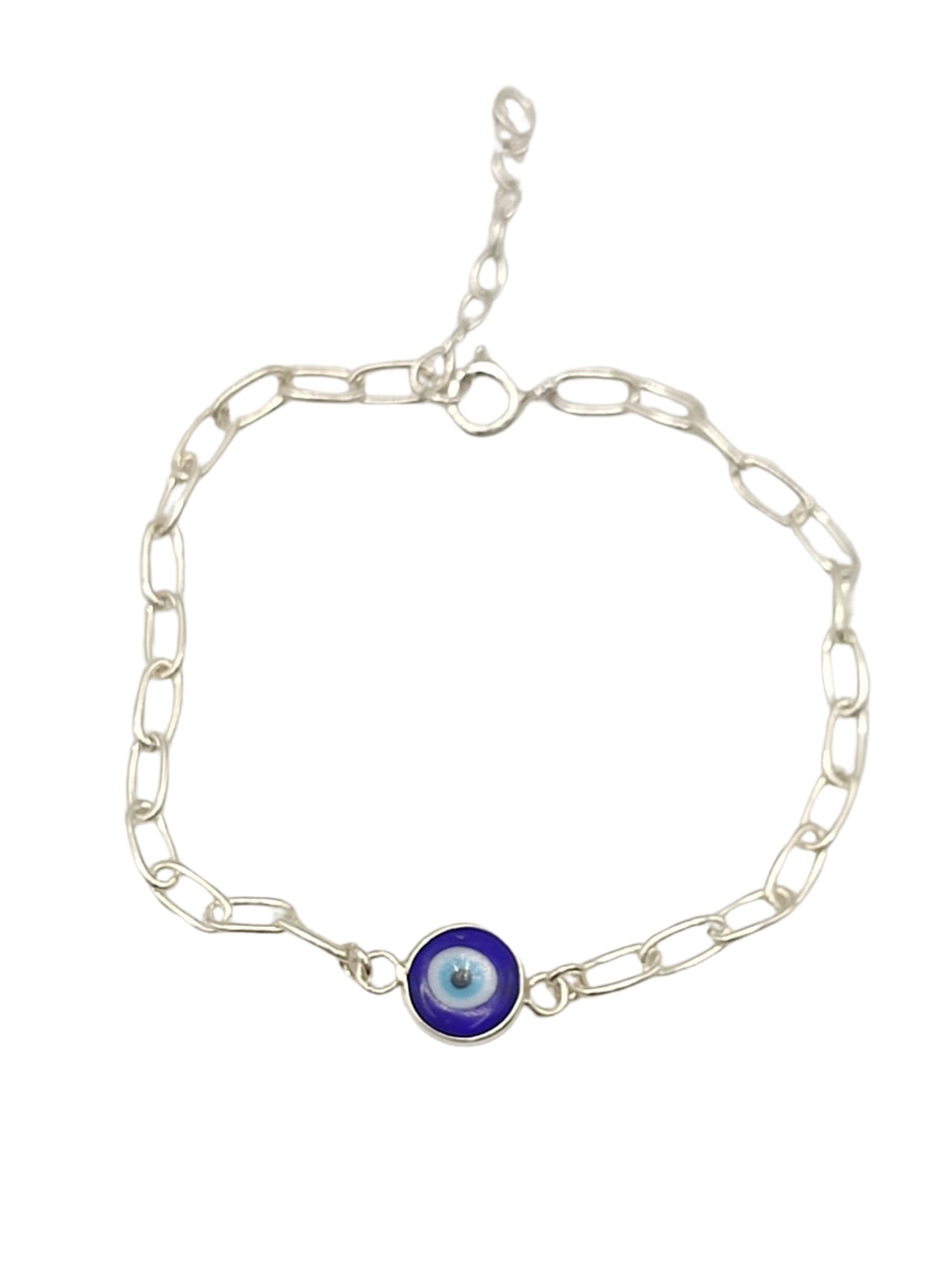 Pulera en hecha en plata con ojo turco en el centro. Peso:3,28g Tamaño: 17cm