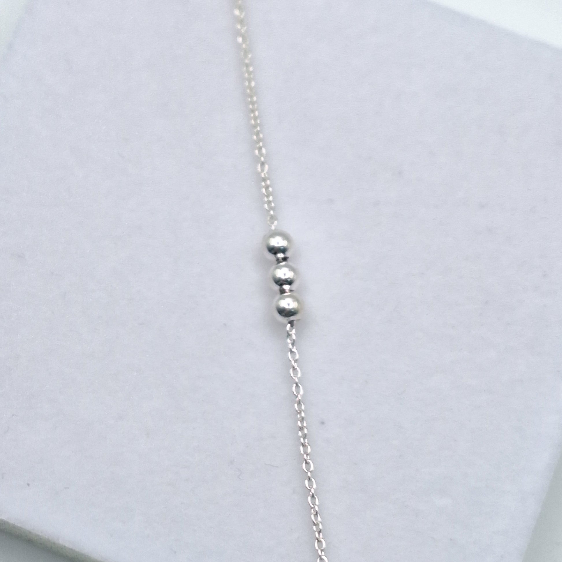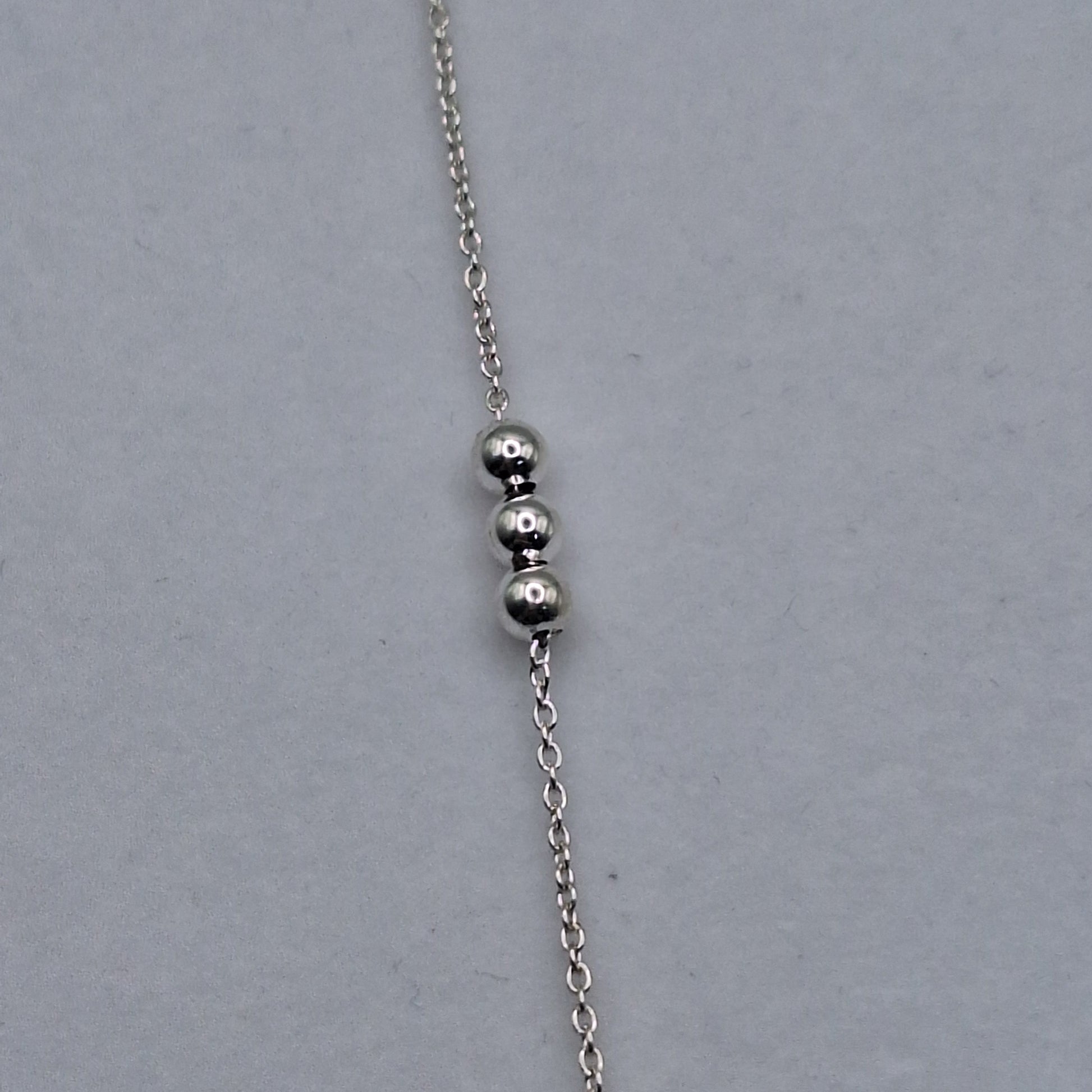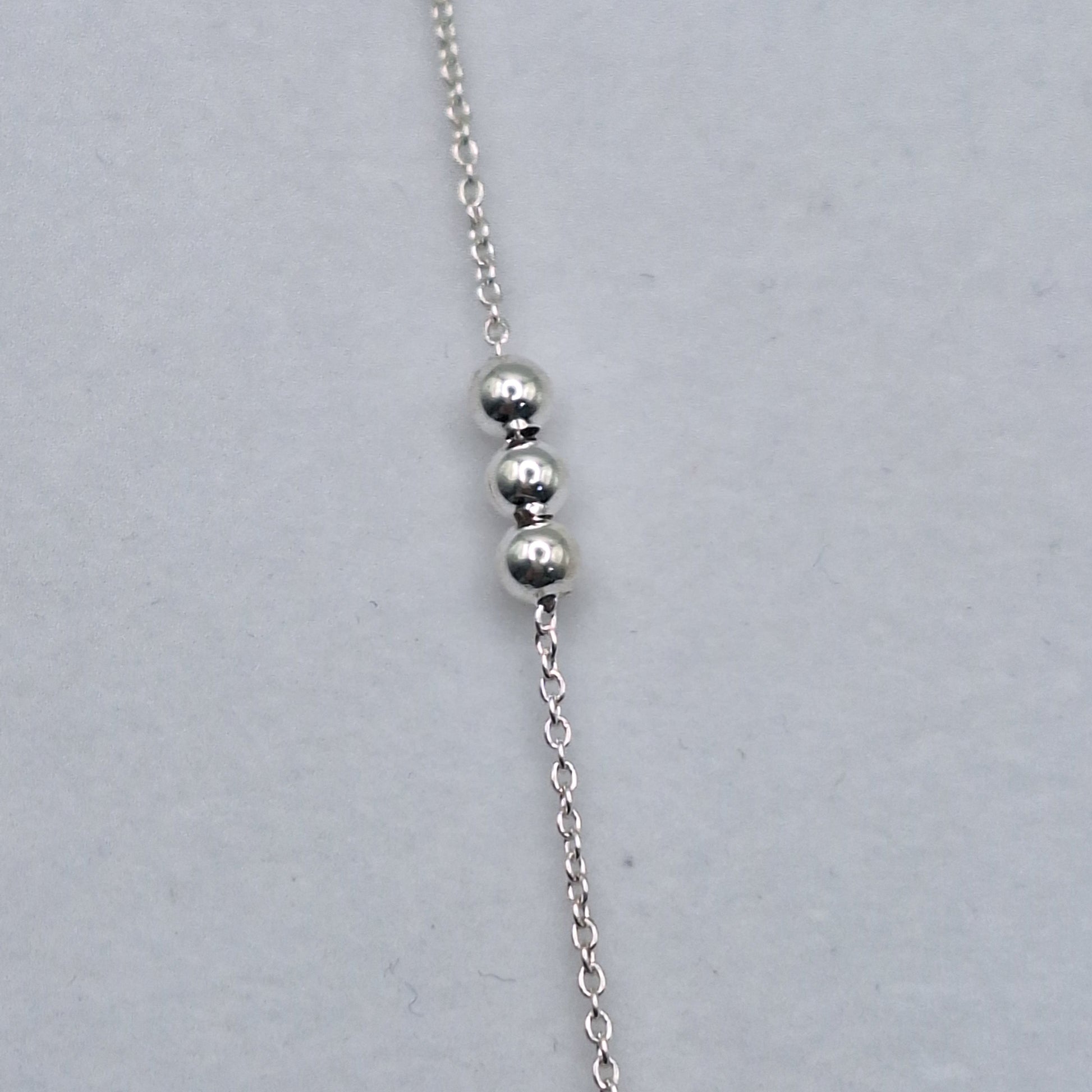 Pulsera hecha el Plata 925 con detalle de tres bolas en el centro de plata. Largo:16cm mas 2 de cadena extensible.Peso: 1,33gr.