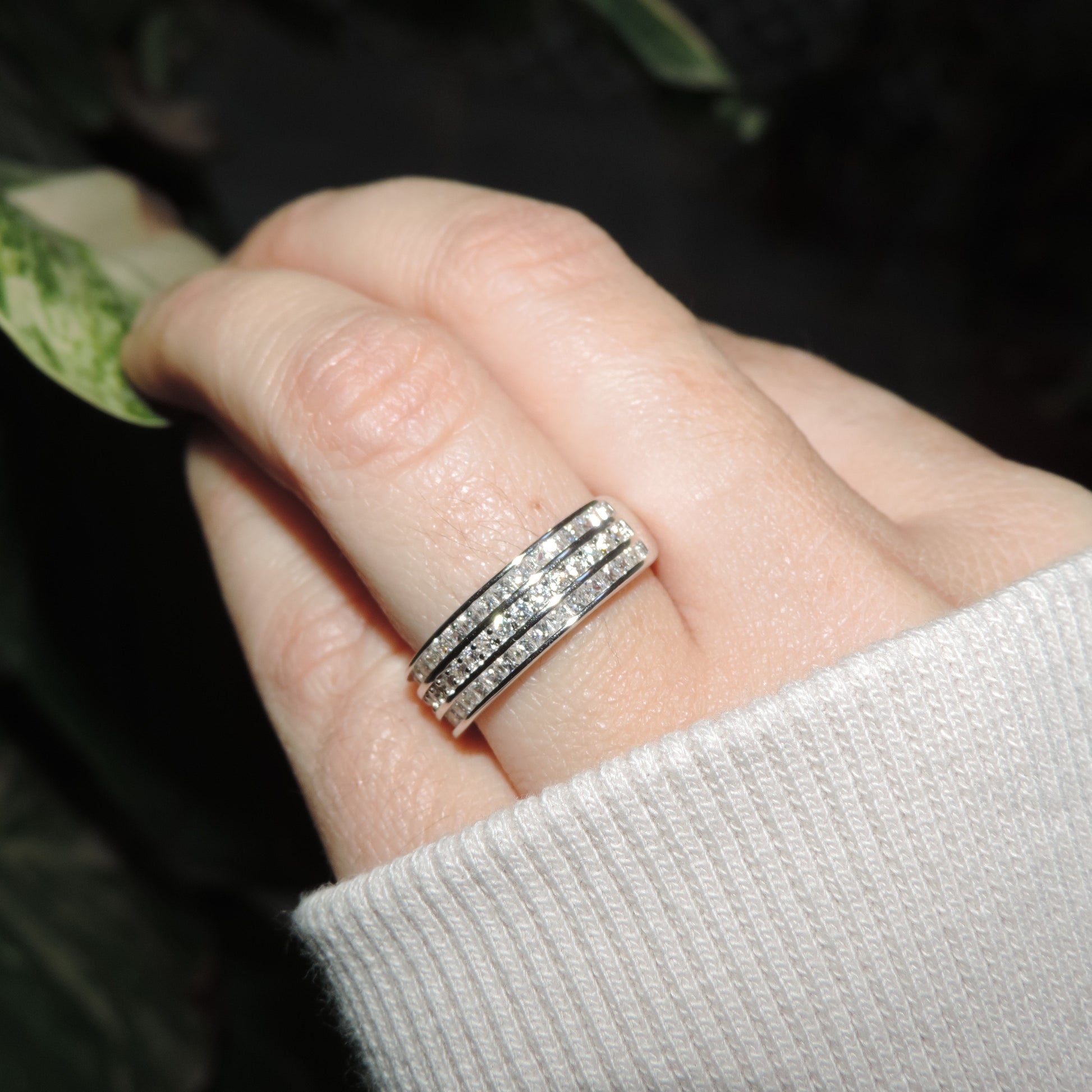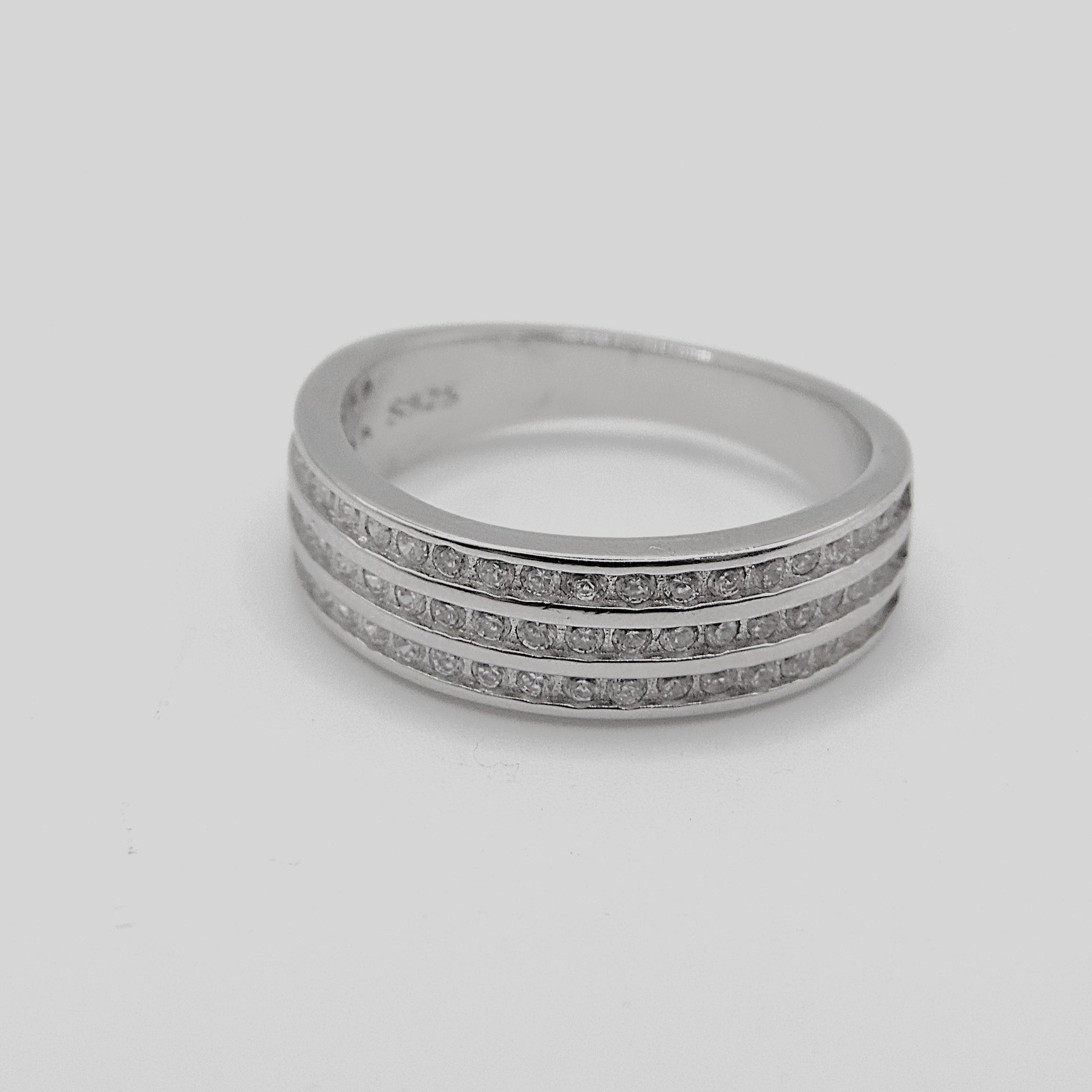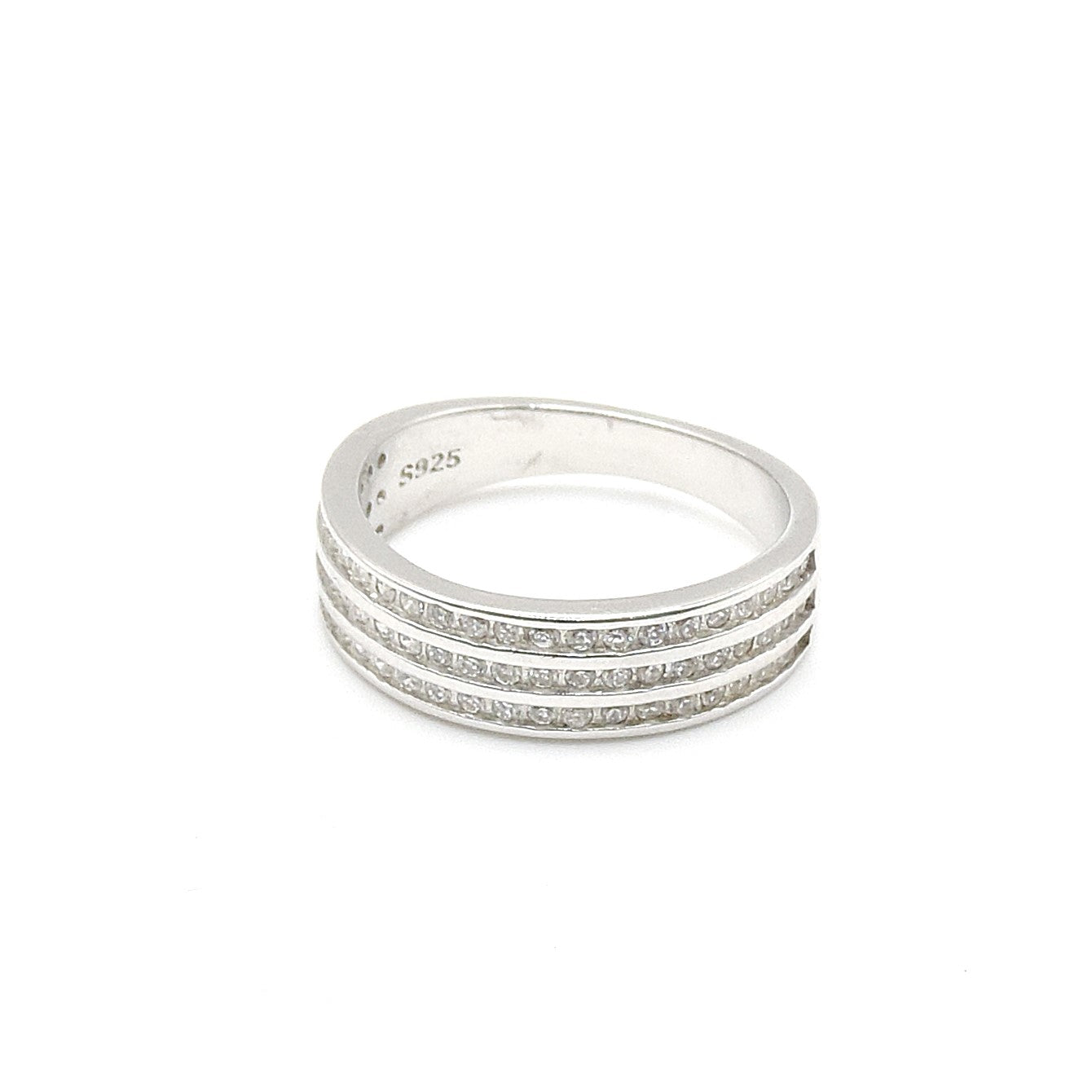 Anillo hecho en Plata de Ley 925 con circonitas engarzadas con micropavé. Tiene un diseño sofisticado que te hará brillar. Tres líneas de circonitas que te hará la envidia de toda mujer. Especial para lucir a diario o con looks especiales.