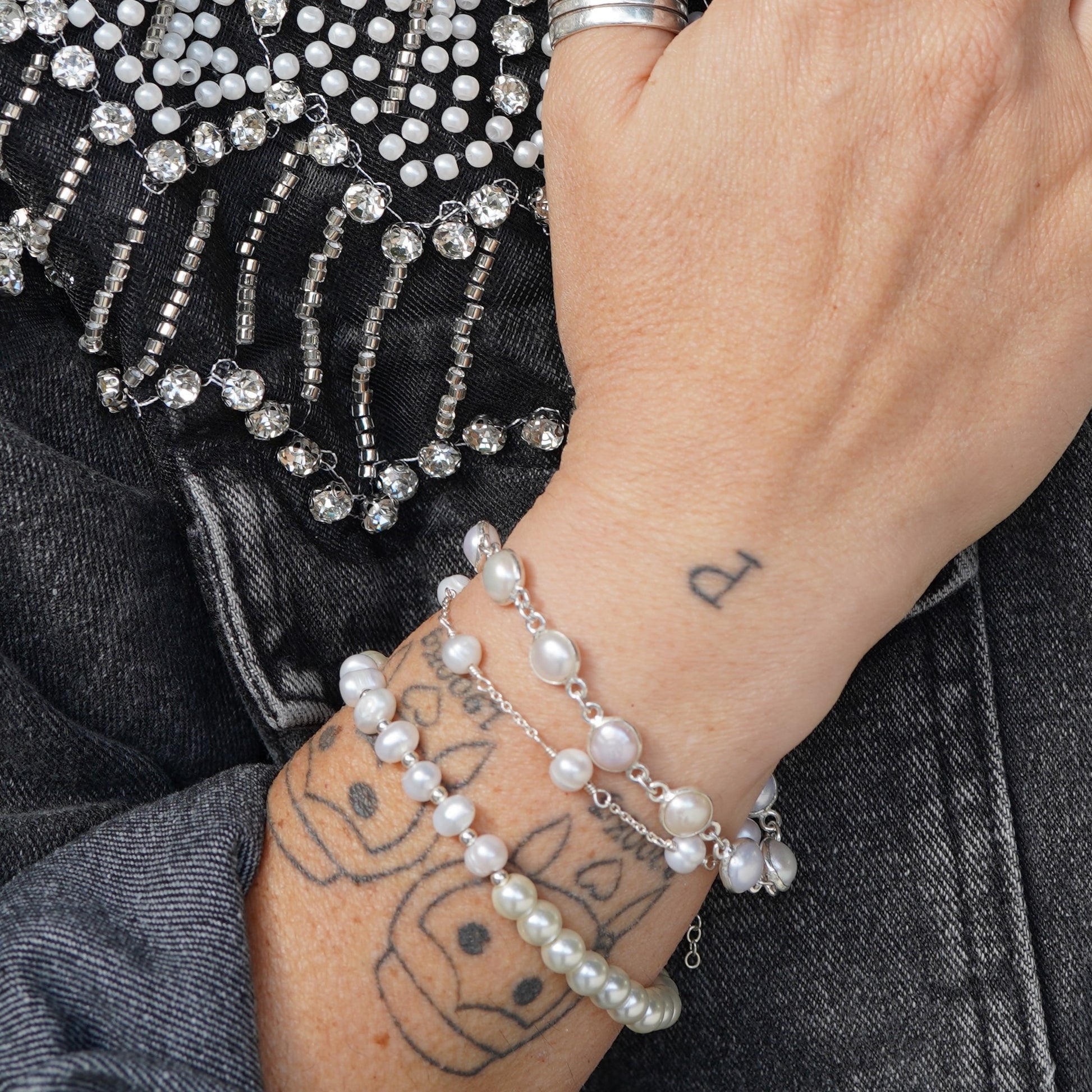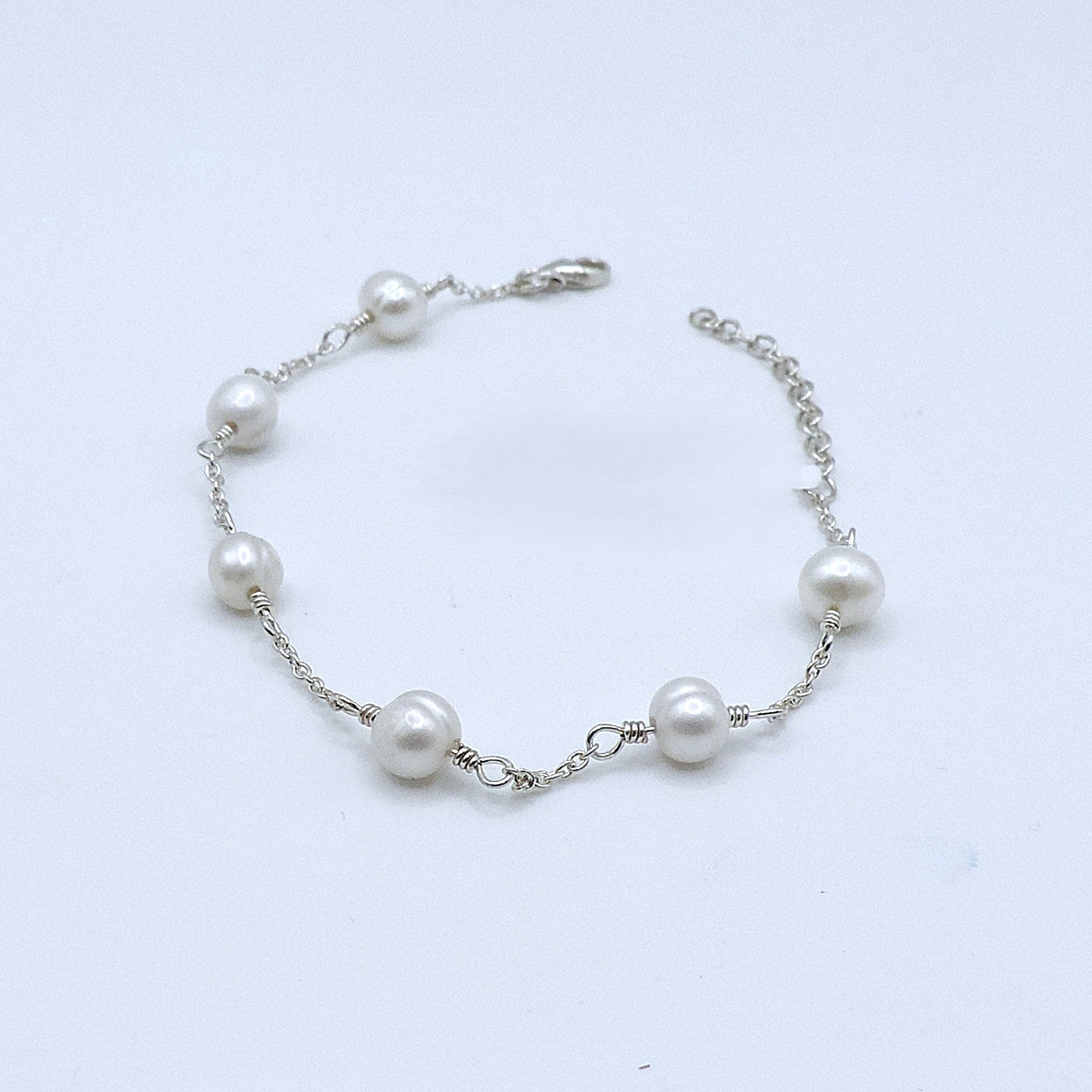 Pulsera hecha en Plata 925 con diseño de cadena con perla de Rio.