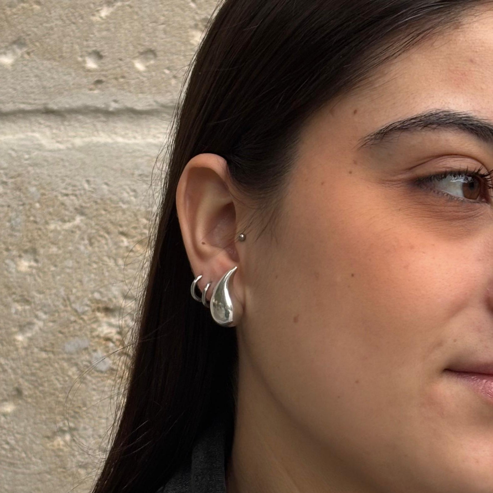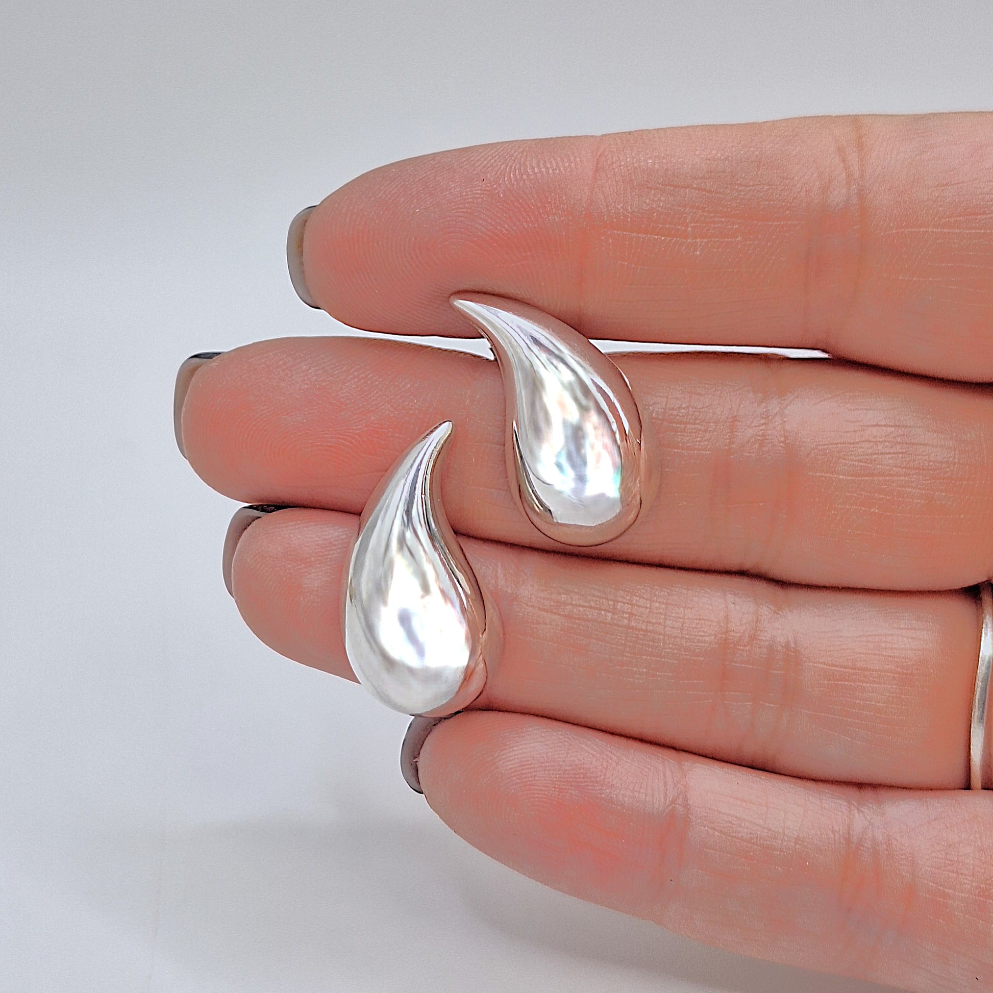 Pendiente de Plata 925. Diseño de gota, pero plana por detras. Tamaño: 2,5cm Peso:4,63gr.
