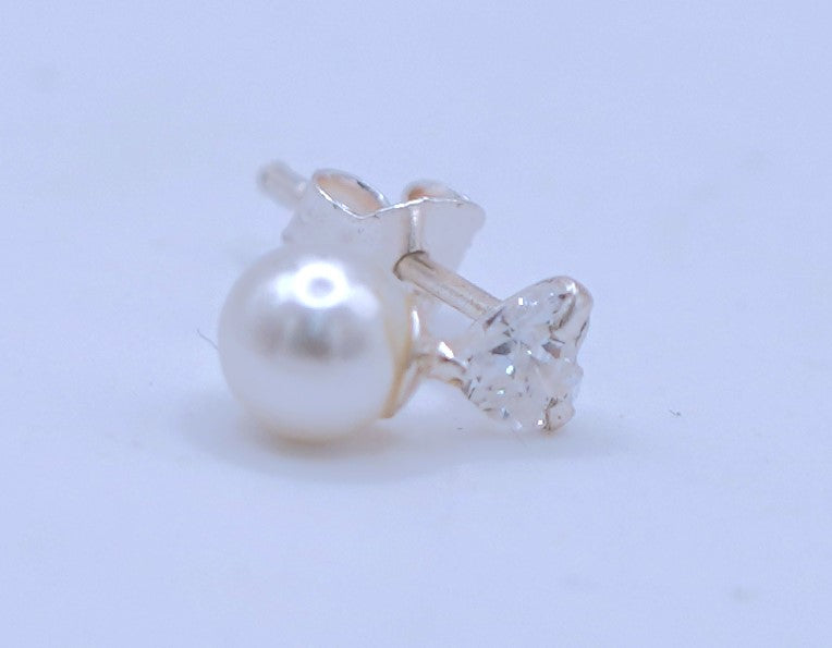 Pendientes hechos en Plata 925 con perla natural y cristal en forma de corazón. Cierre de presión.