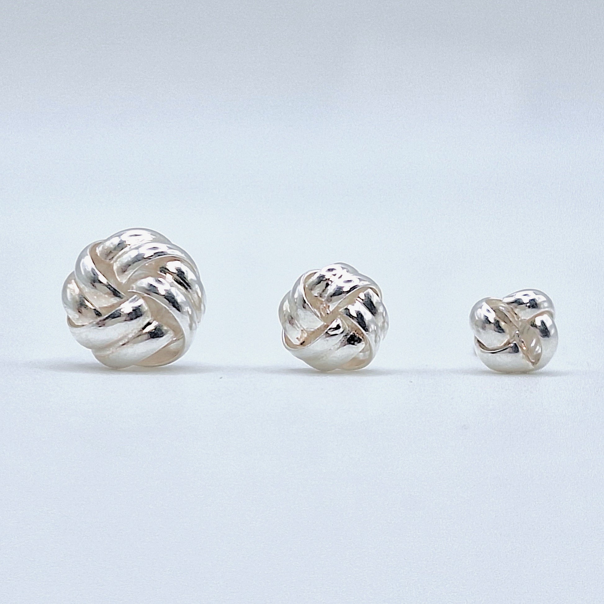 Pendientes de Plata 925. Diseño actual y sofisticado en forma de nudo. Disponible en 3 tamaños. 5, 7 y 9 mm.
