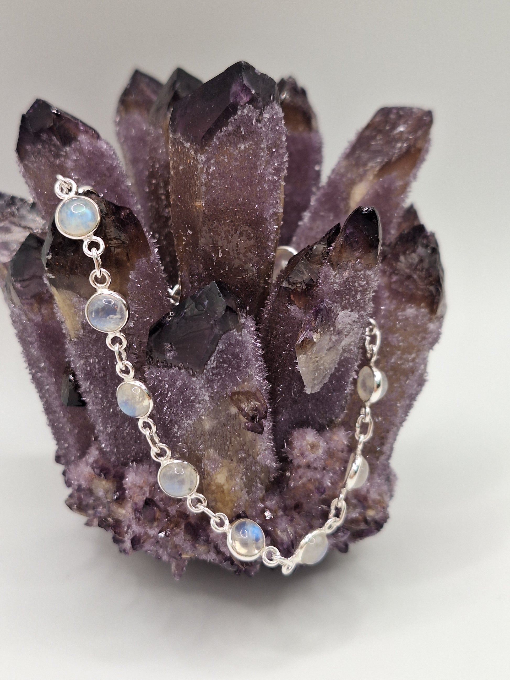 Pulsera de Plata con diferentes piedras. Tamaño: 20x0,6 cm Peso: 5,53gr.