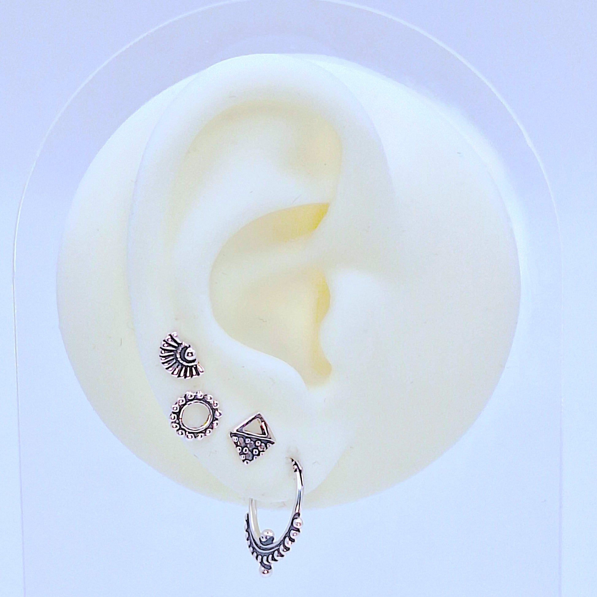 Set de pendientes bali hechos en Plata 925, con Aro de 2cm Iris y con pendientes mini Tippoo, Bhuv y Alka.