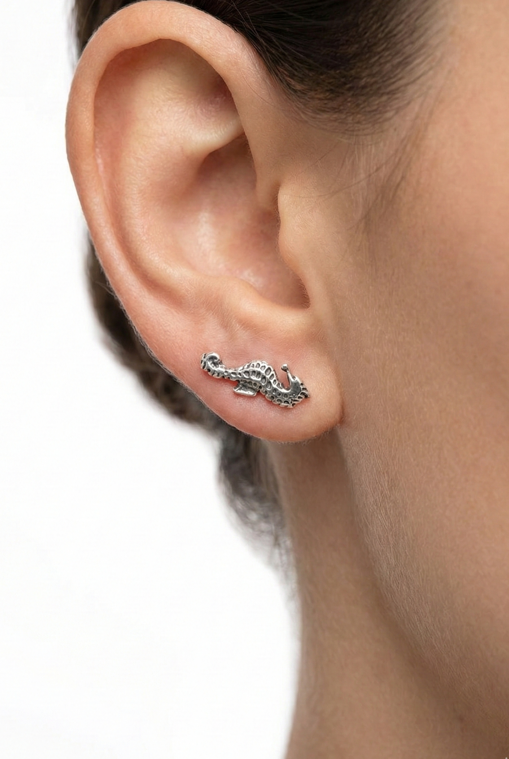 Puedes ponerlos en el primer, segundo y tercer agujero del lóbulo y combinarlos con aros o pendientes mini del mismo tema.