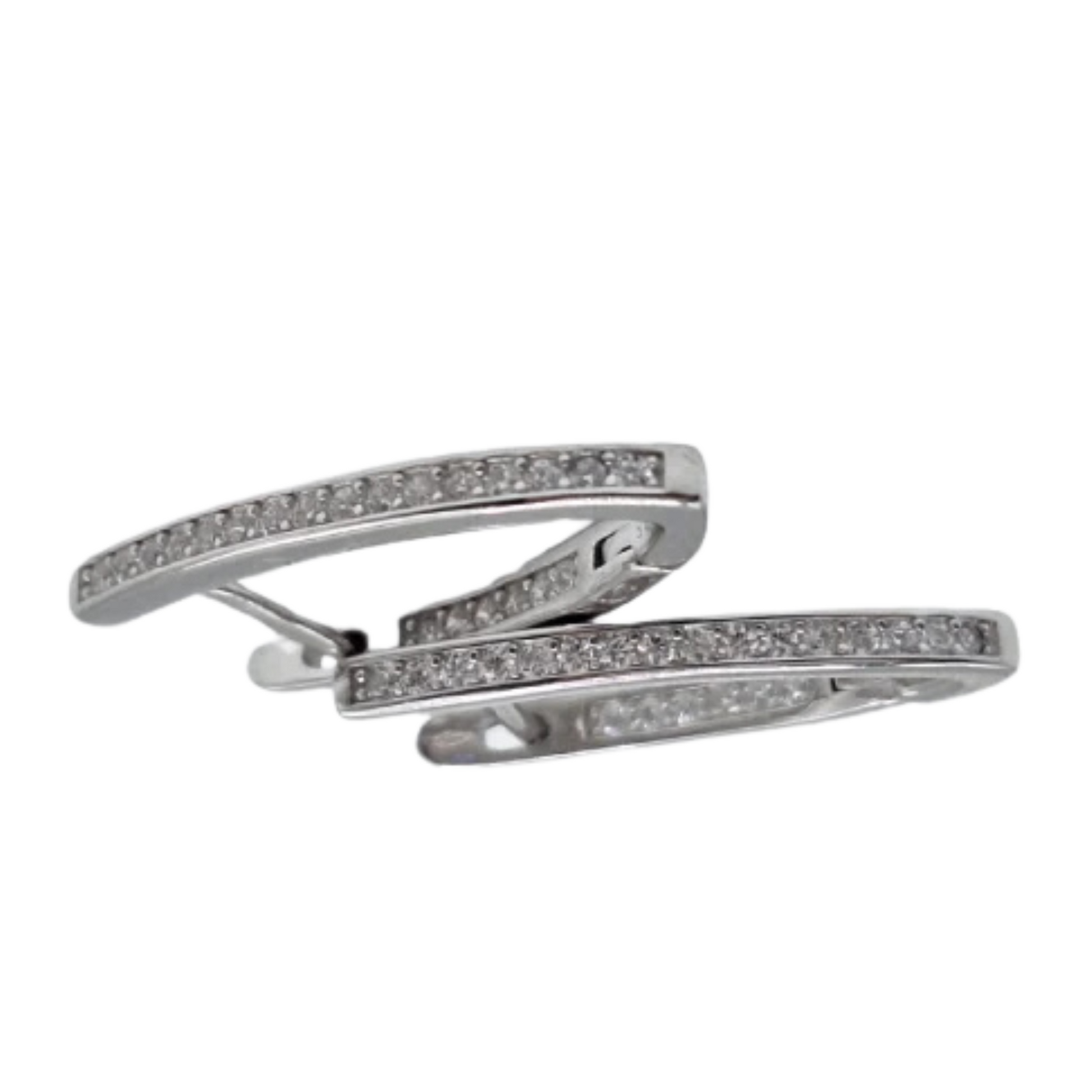 Pendiente hecho en Plata con micropave en forma de triangulo ovalado. Peso:3,01g/par. Tamaño: 3x22mm.