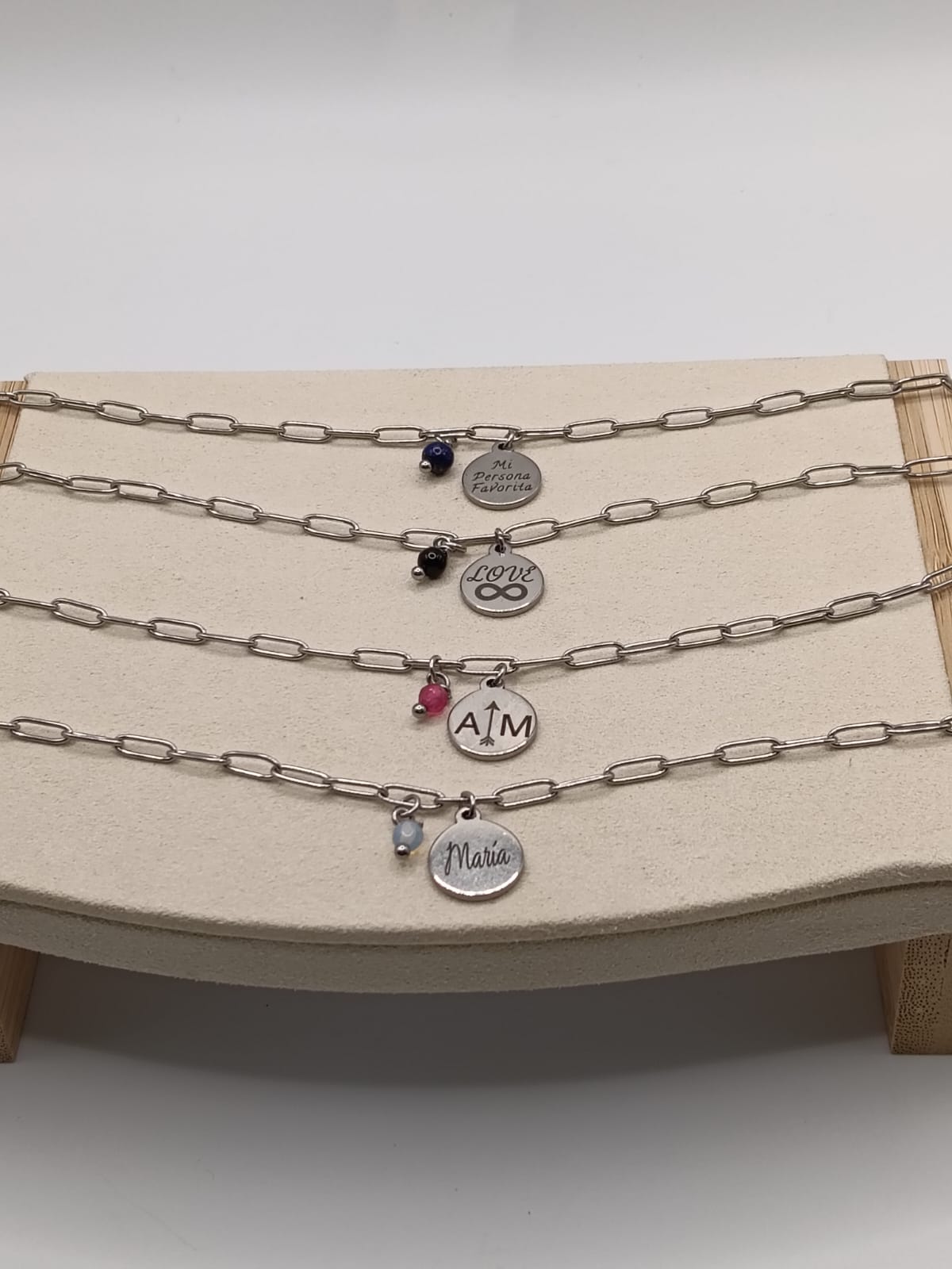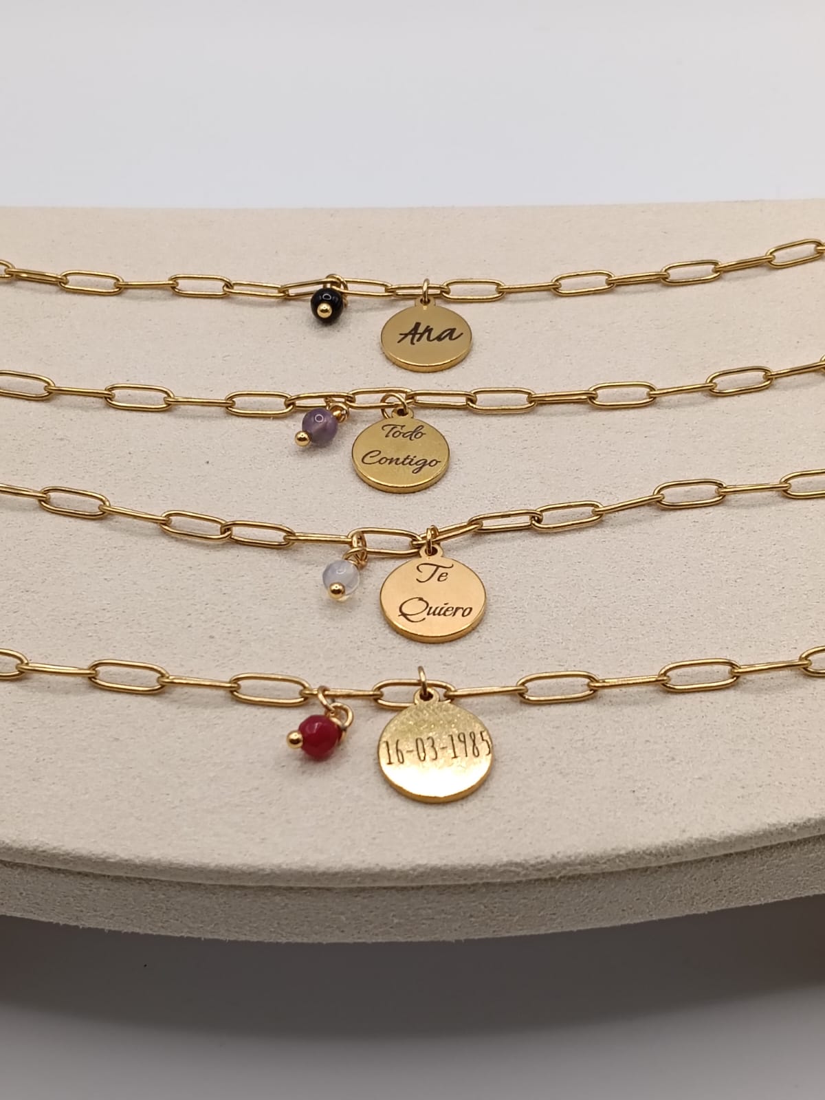 Pensada para quienes buscan joyas con significado, la medalla se puede personalizar con iniciales, fechas o palabras especiales, convirtiendo cada pulsera en una pieza única creada a tu medida. La piedra natural añade un toque sofisticado y atemporal, ideal tanto para llevar a diario como para lucir en momentos especiales.