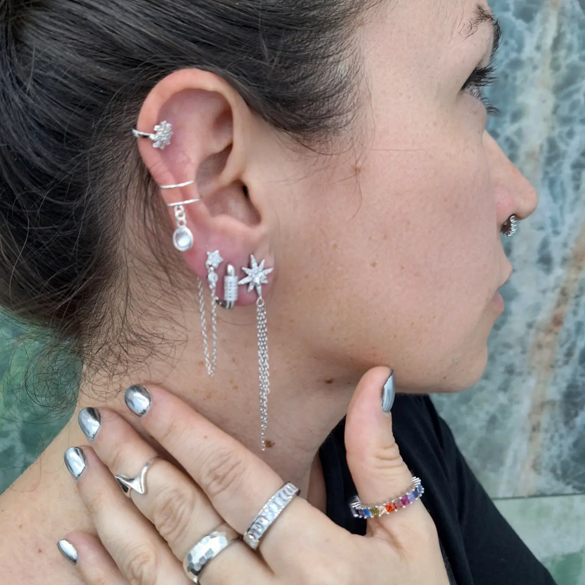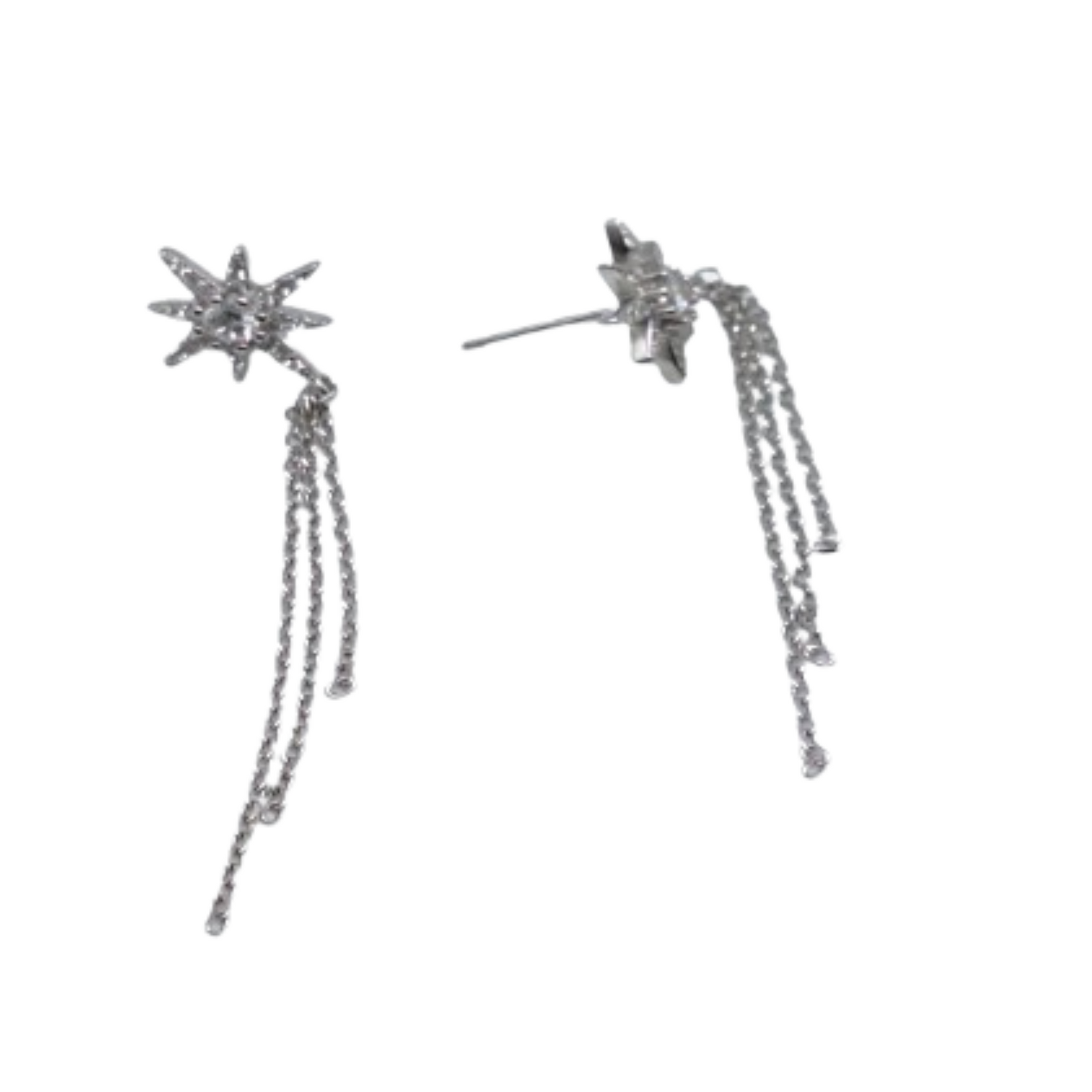 Pendientes de Plata en forma de estrella con micropavé largos. Peso: 2,84/par Tamaño: 18x65mm