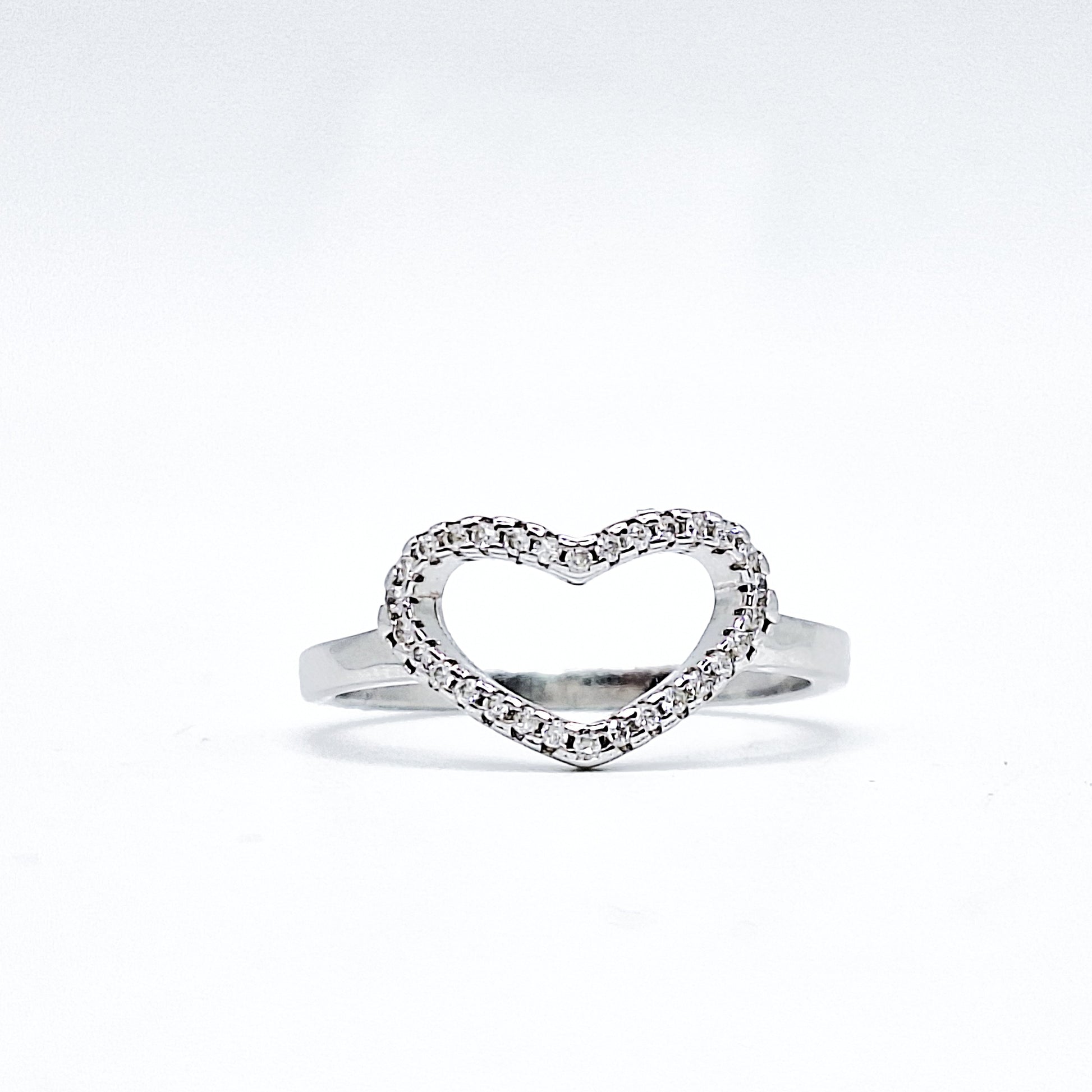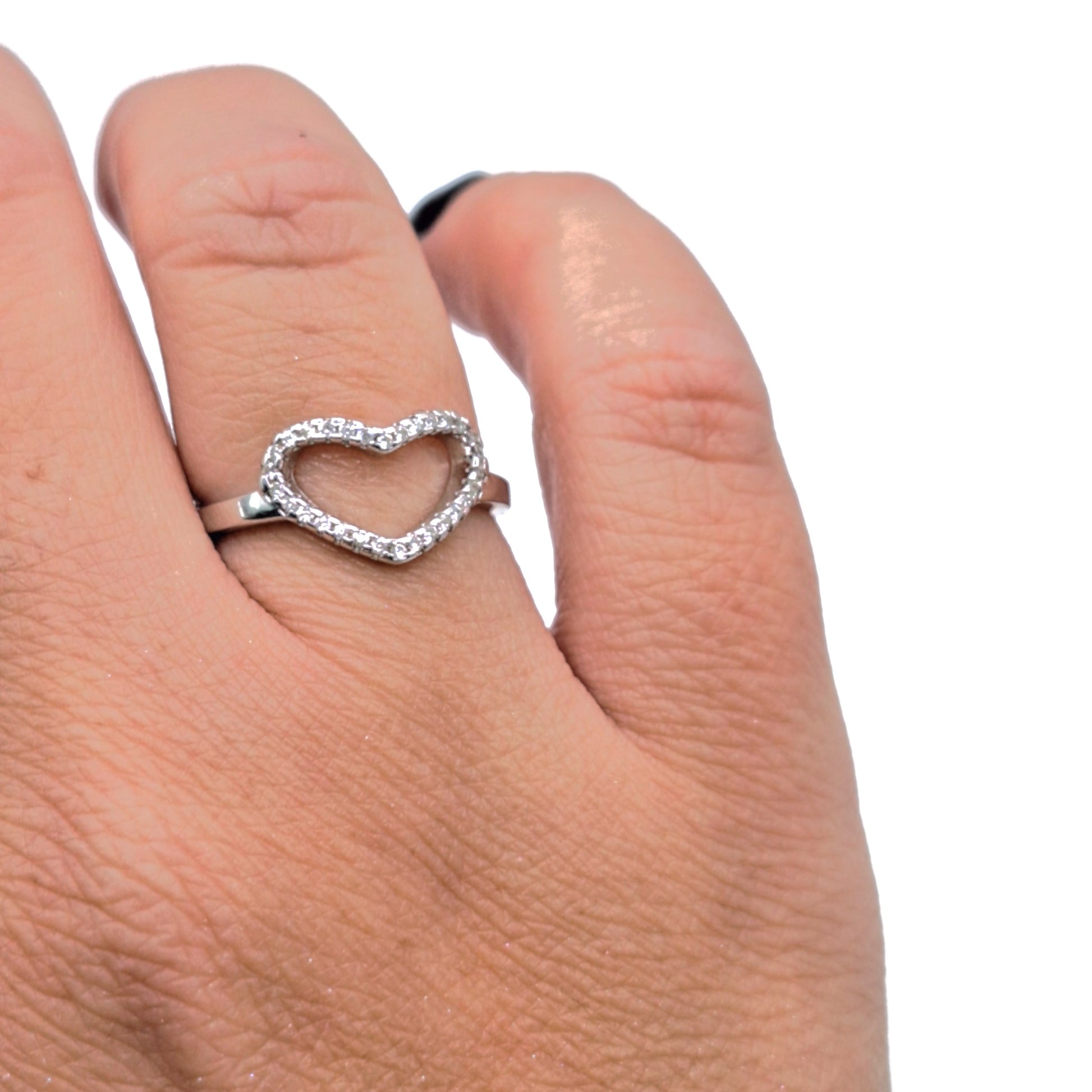 Anillos de Plata 925 con circonitas. Tiene un diseño en forma de corazón hueco, rodeado de circonitas.