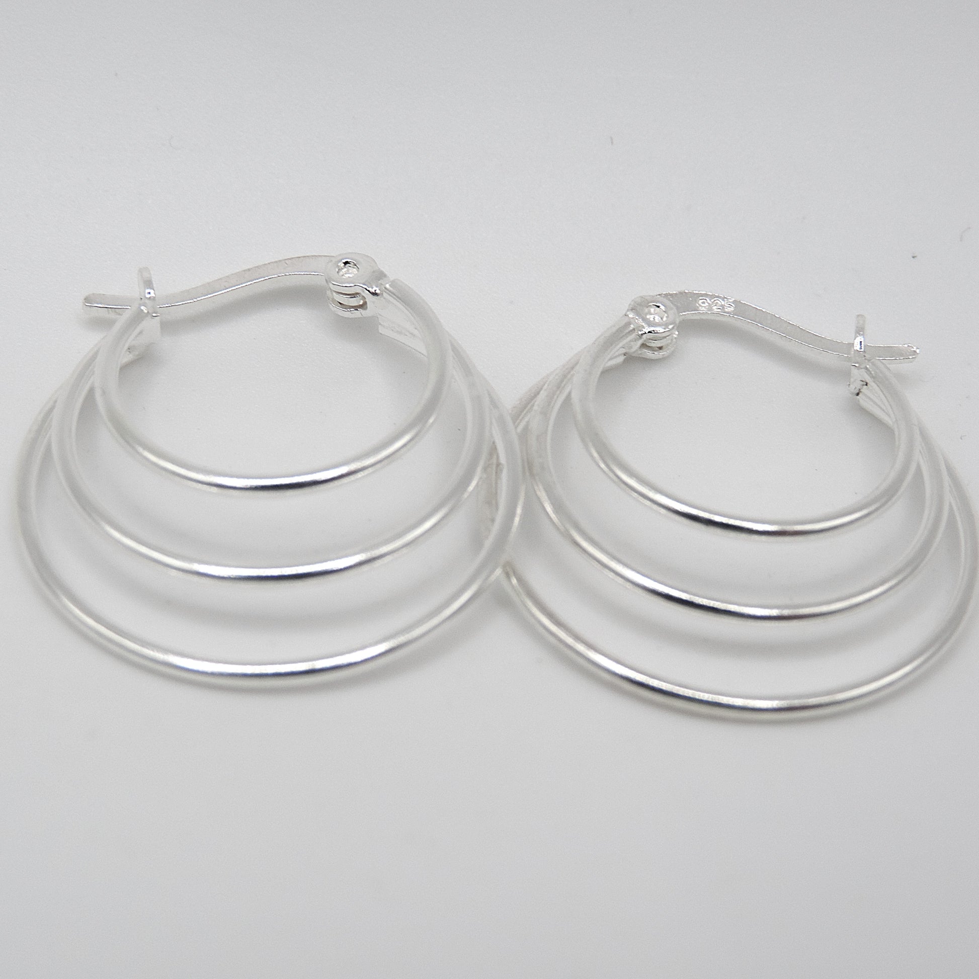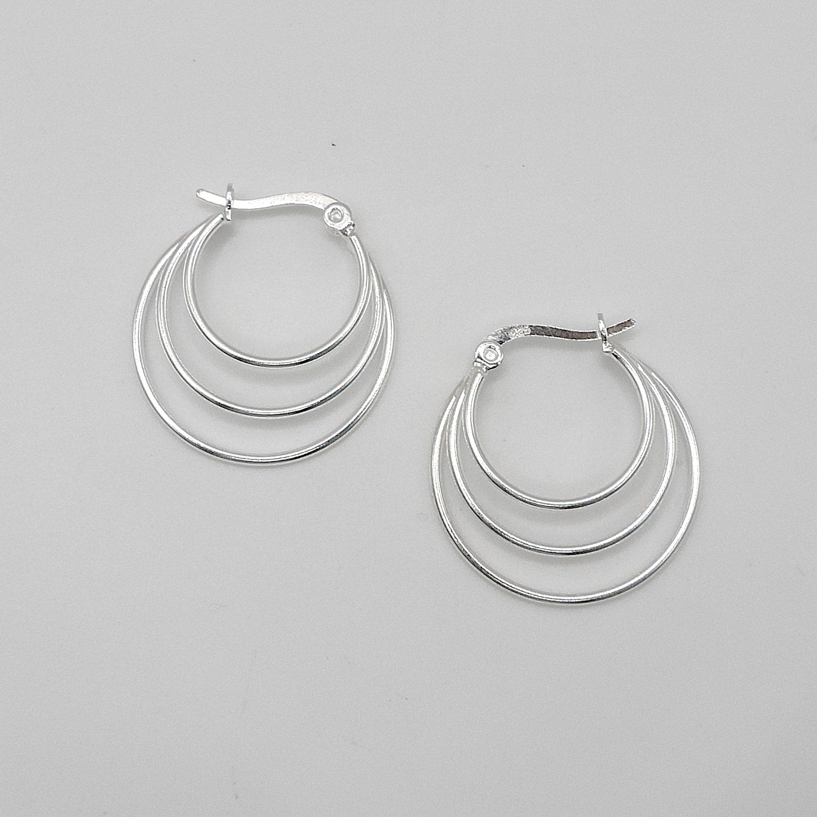 Hecho en Plata 925 con disero de Aro triple soldado. Moderno y sofisticado. Diametro: 2,3cm Peso: 3,50gr