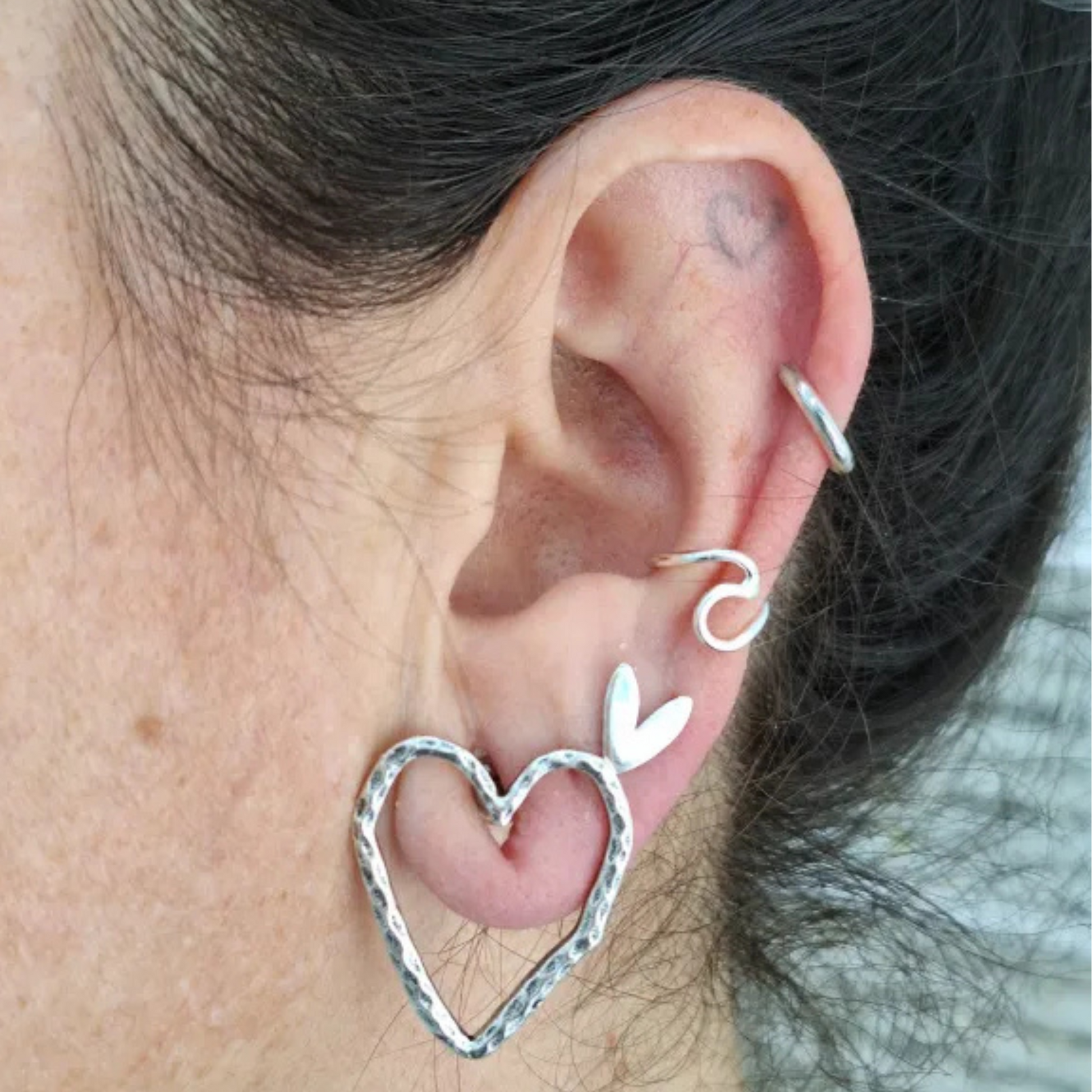Piercing hecho en Plata. No hace falta agujaero para colocarlo. Peso: 0,45g Tamaño: 7X12mm.