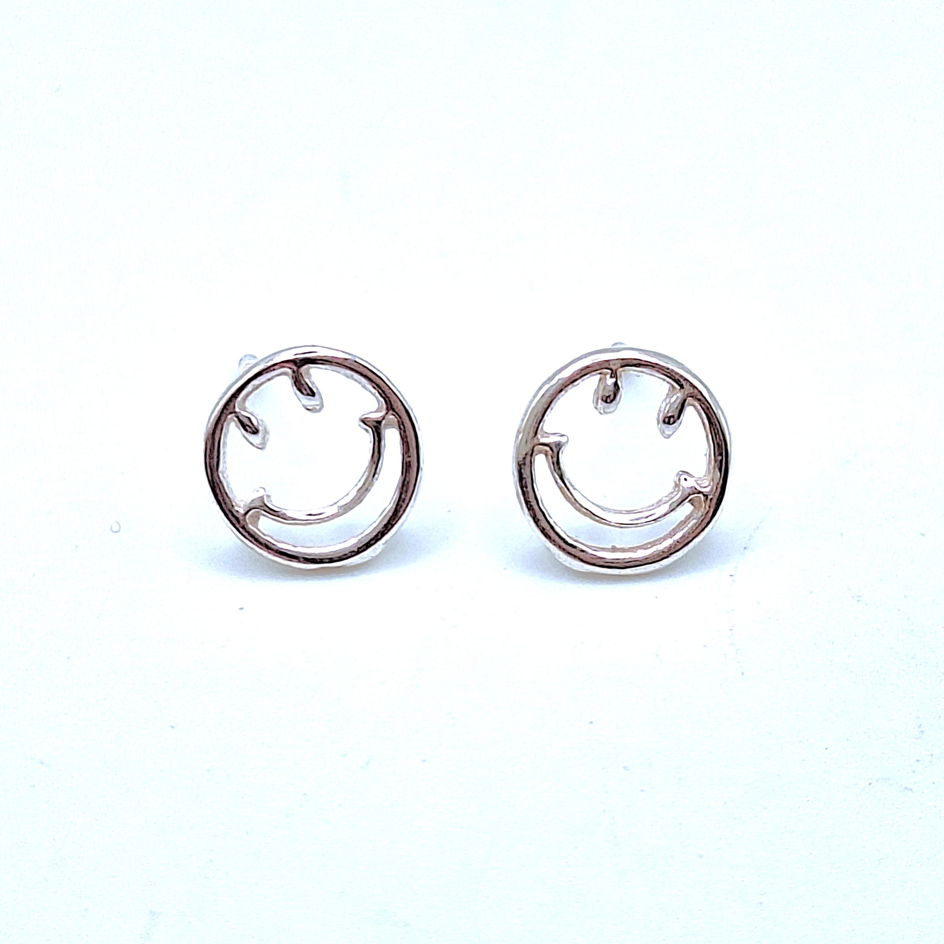 Pendientes hechos en Plata 925. Diseño divertido de smile. Diámetro 9mm.