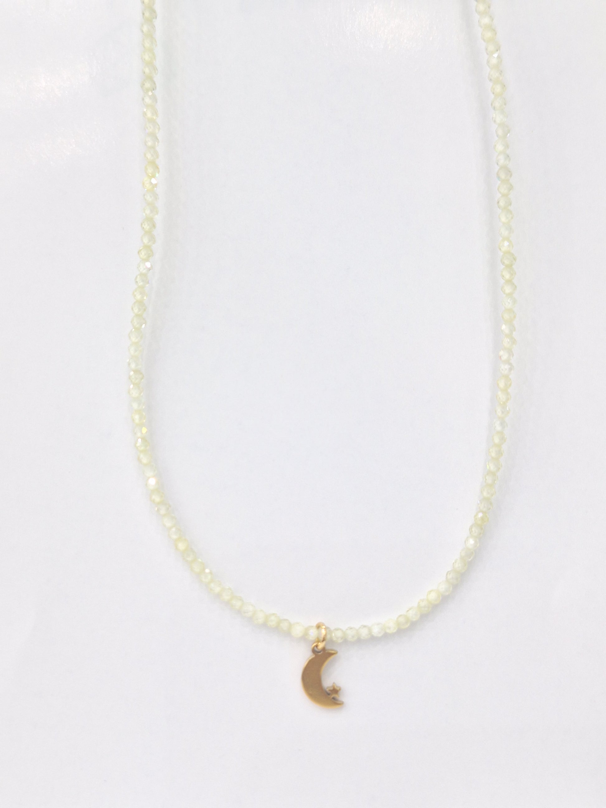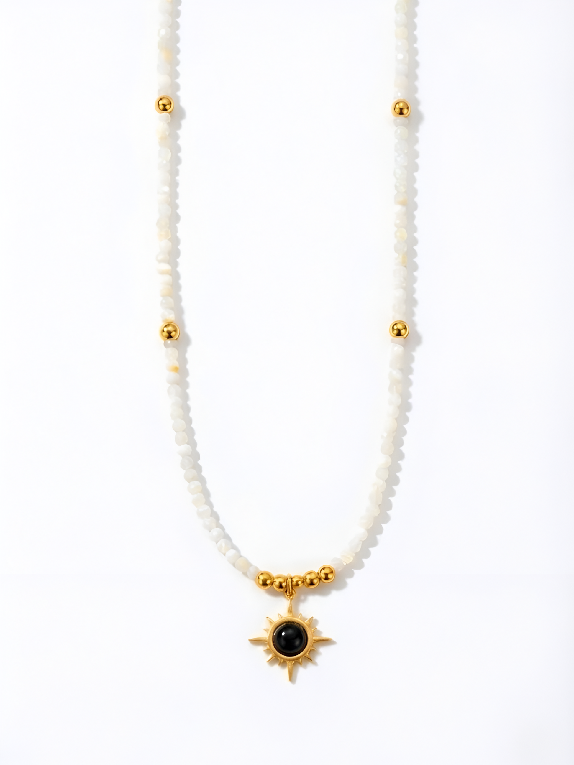 Collar de 40cm hecho en piedra o cristal con Acero 316l dorado con detalle de dije en diferentes formas.