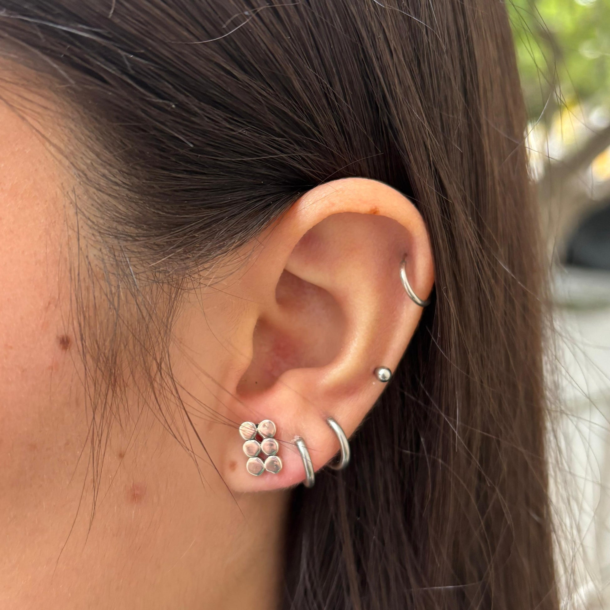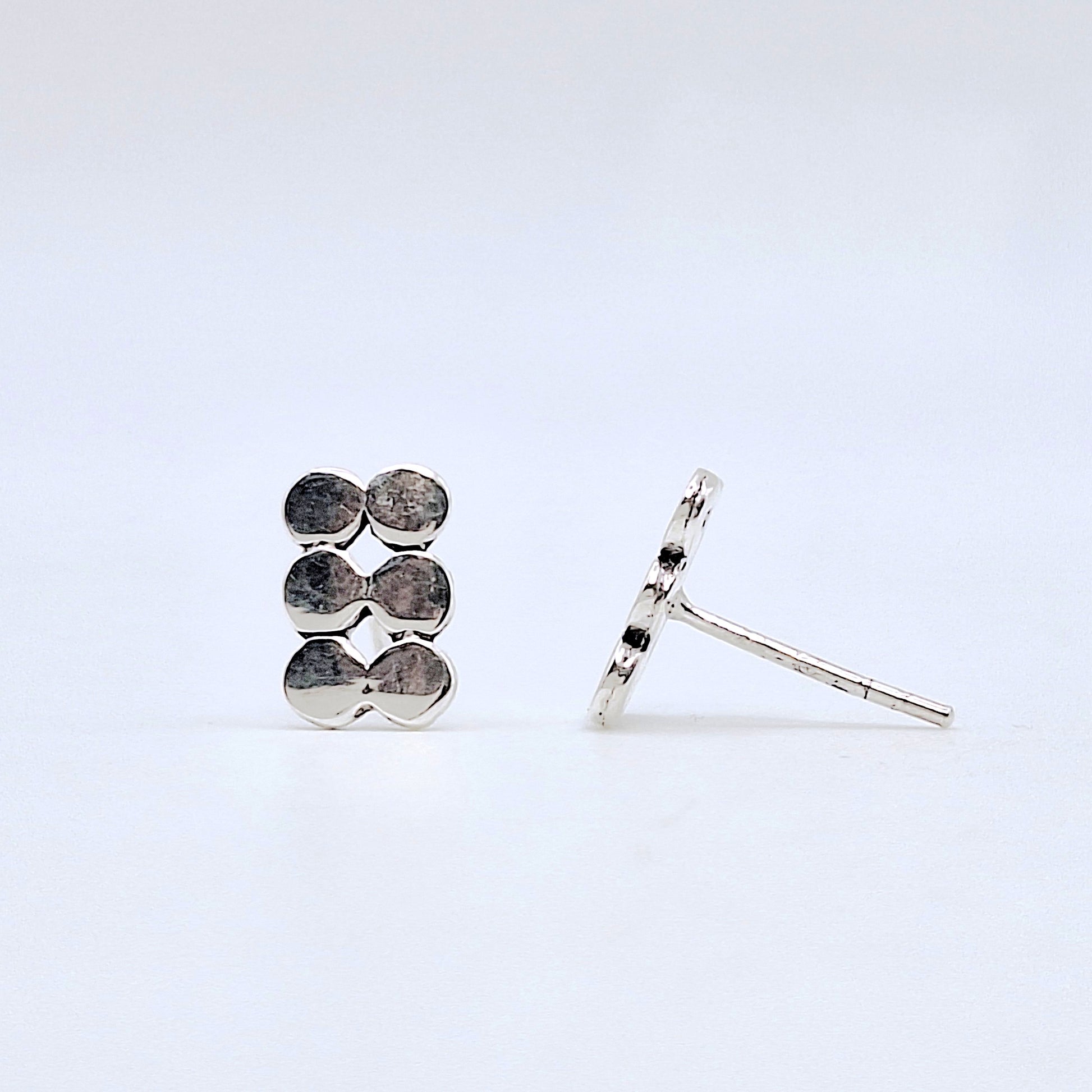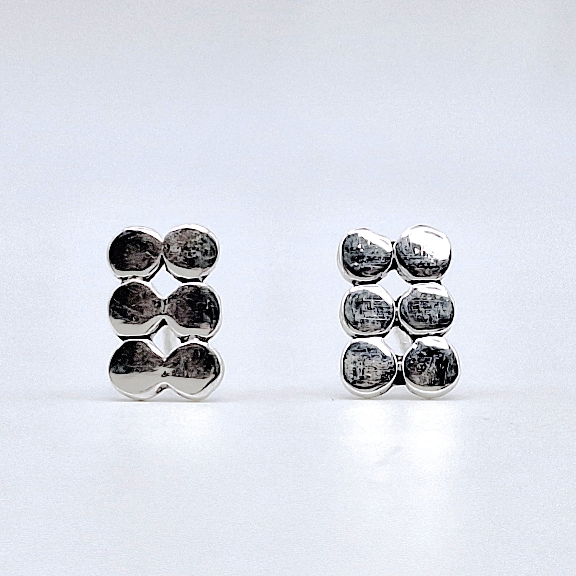 Pendientes de Plata 925 con diseño un diseño moderno. 6 círculos de Plata pegados entre si formando un rectángulo. Tamaño: 1cm de Largo x 0,6cm de Ancho.