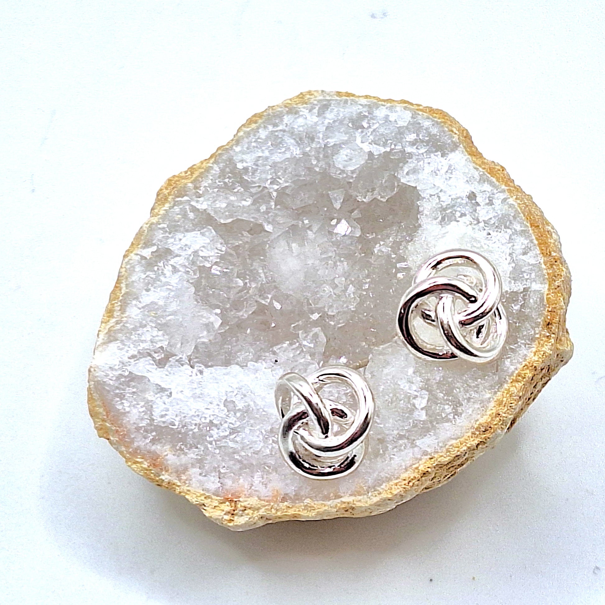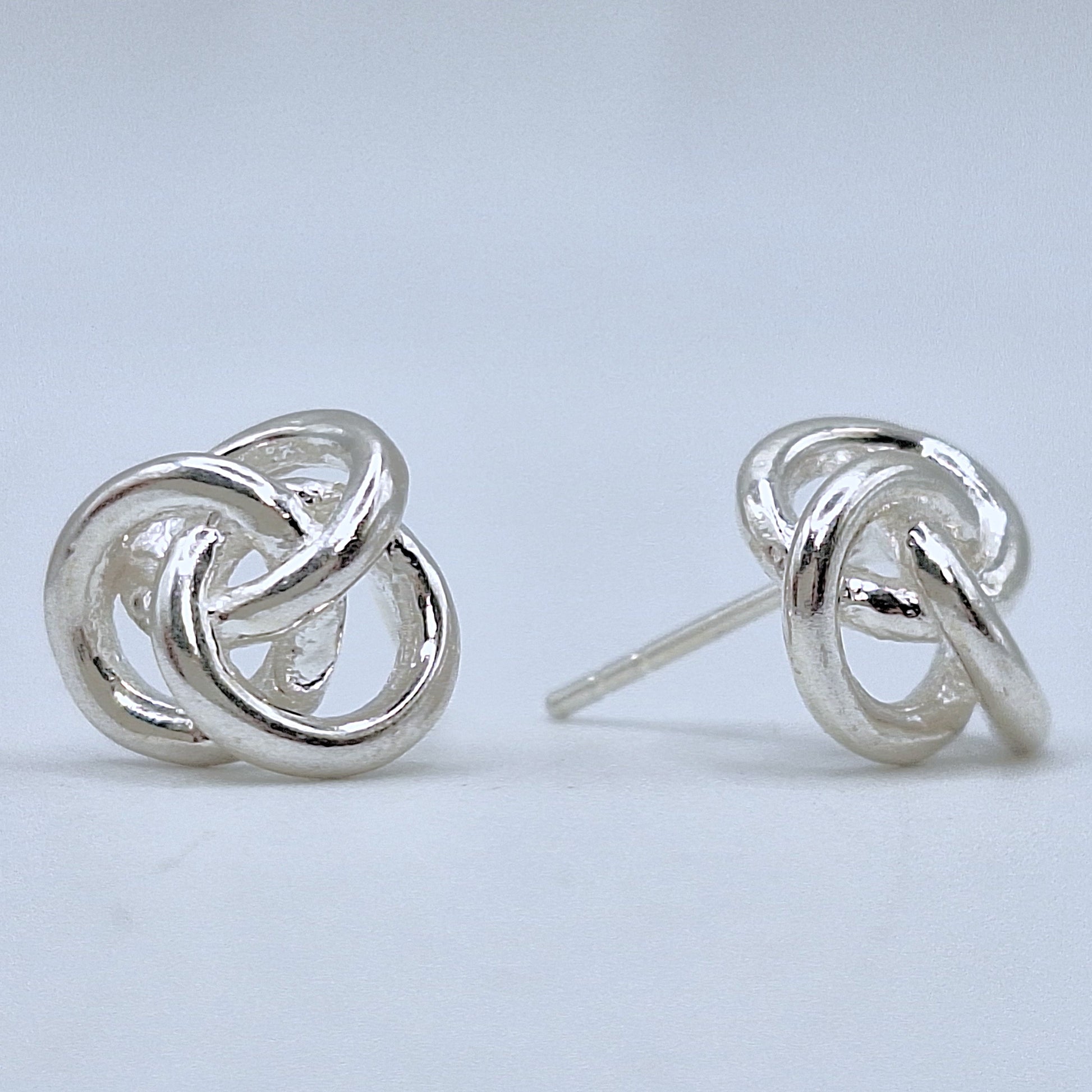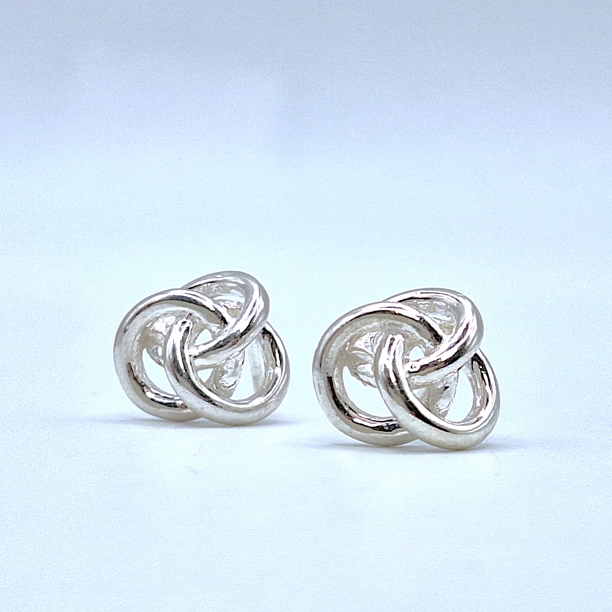 Pendiente de Plata 925. Este pendiente tiene un diseño de tros circulos entrelazados que forman un nudo. Diámetro: 1cm.