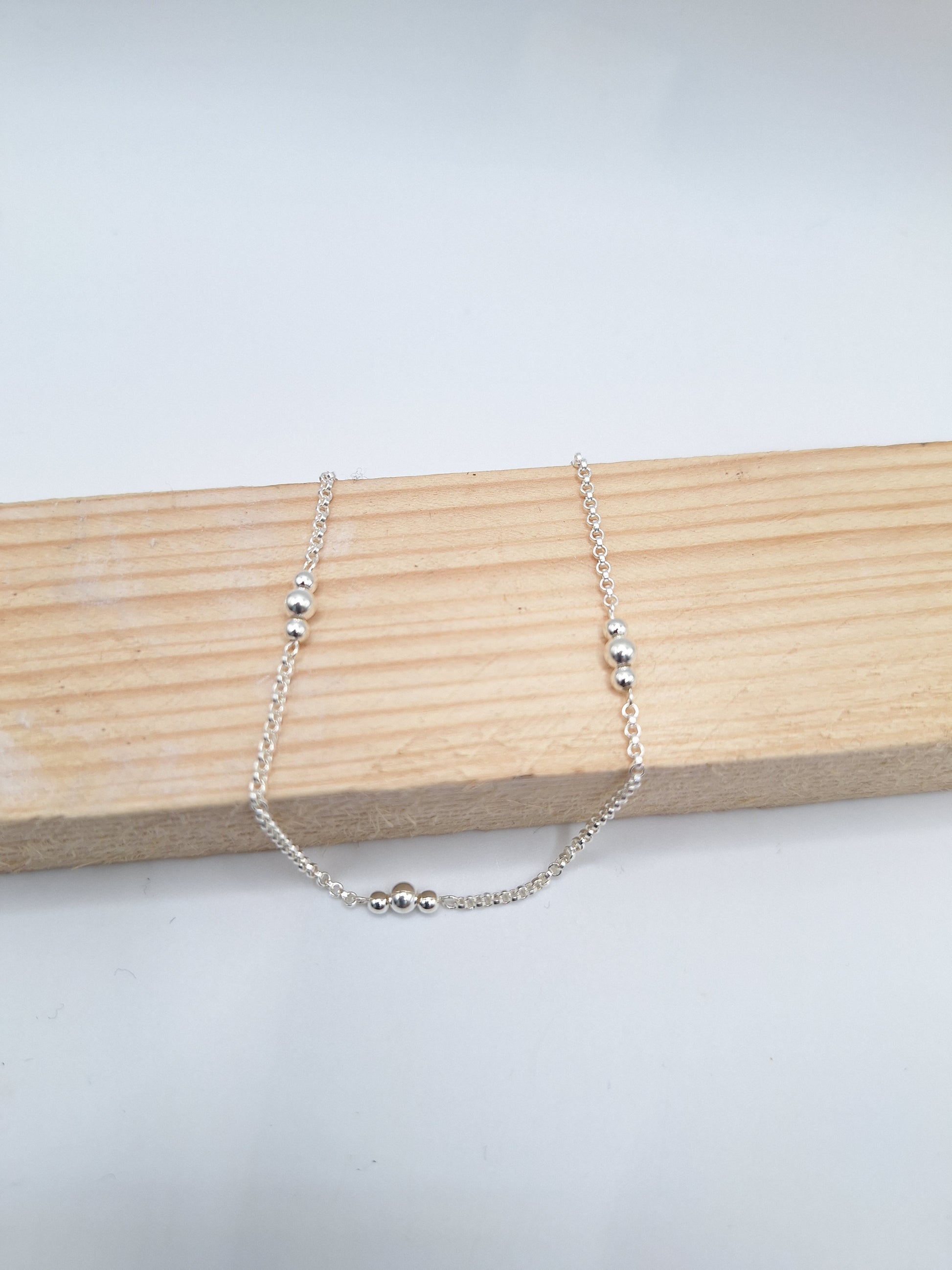 Tobillera hecha en Plata925, con cadena con agrupaciones de bolitas de plata.