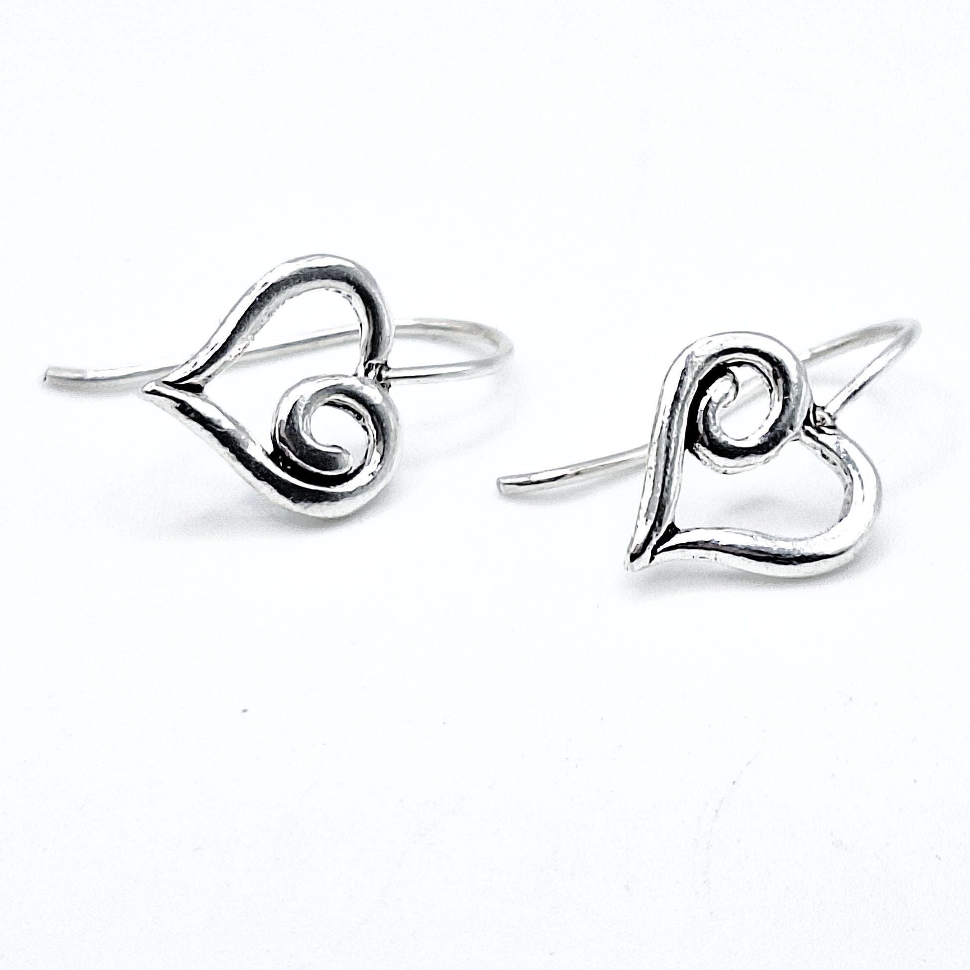 Penidentes de Plata 925 con diseño de corazon. Un poquito largos con cierre de pasador rogido que queda abierto por detrás.