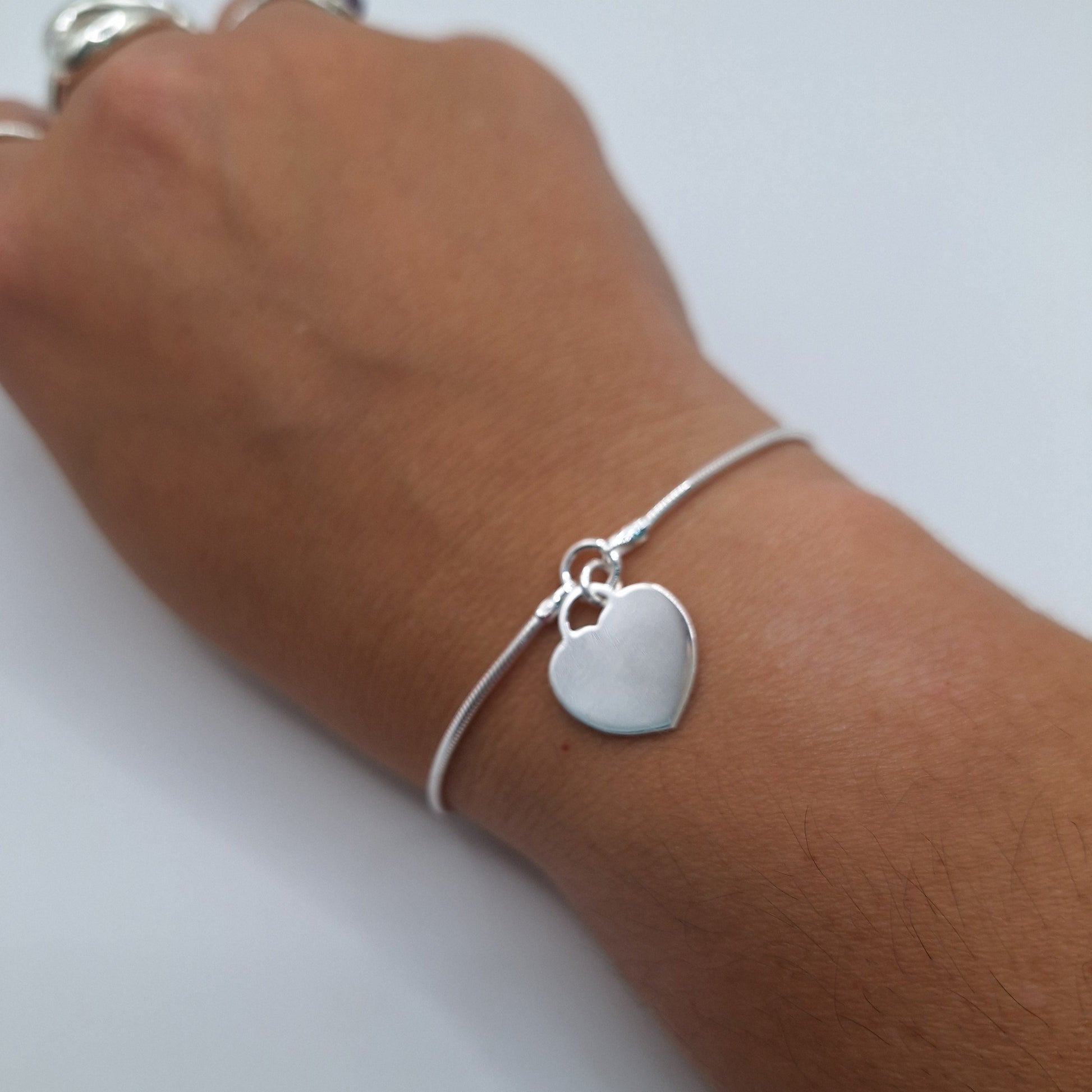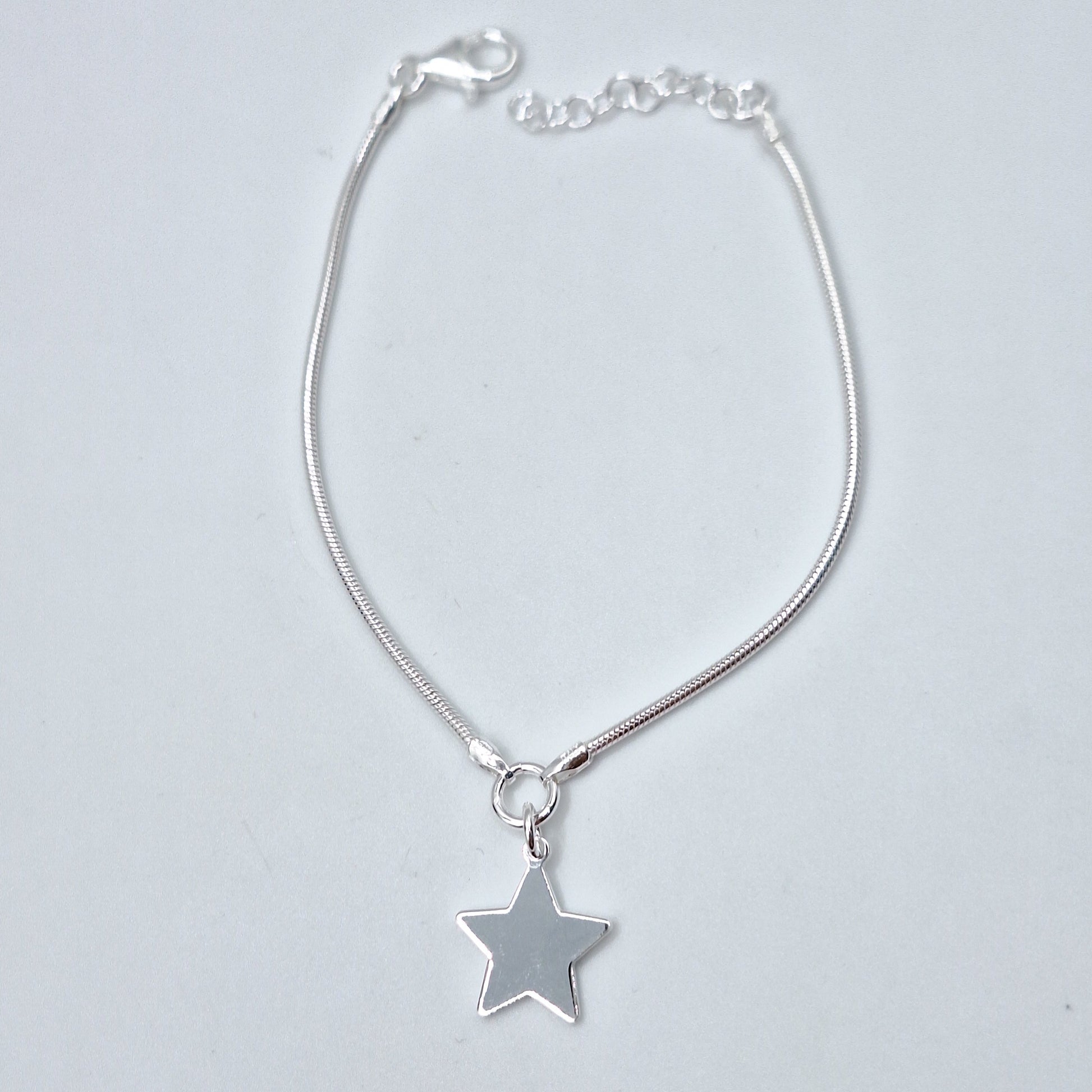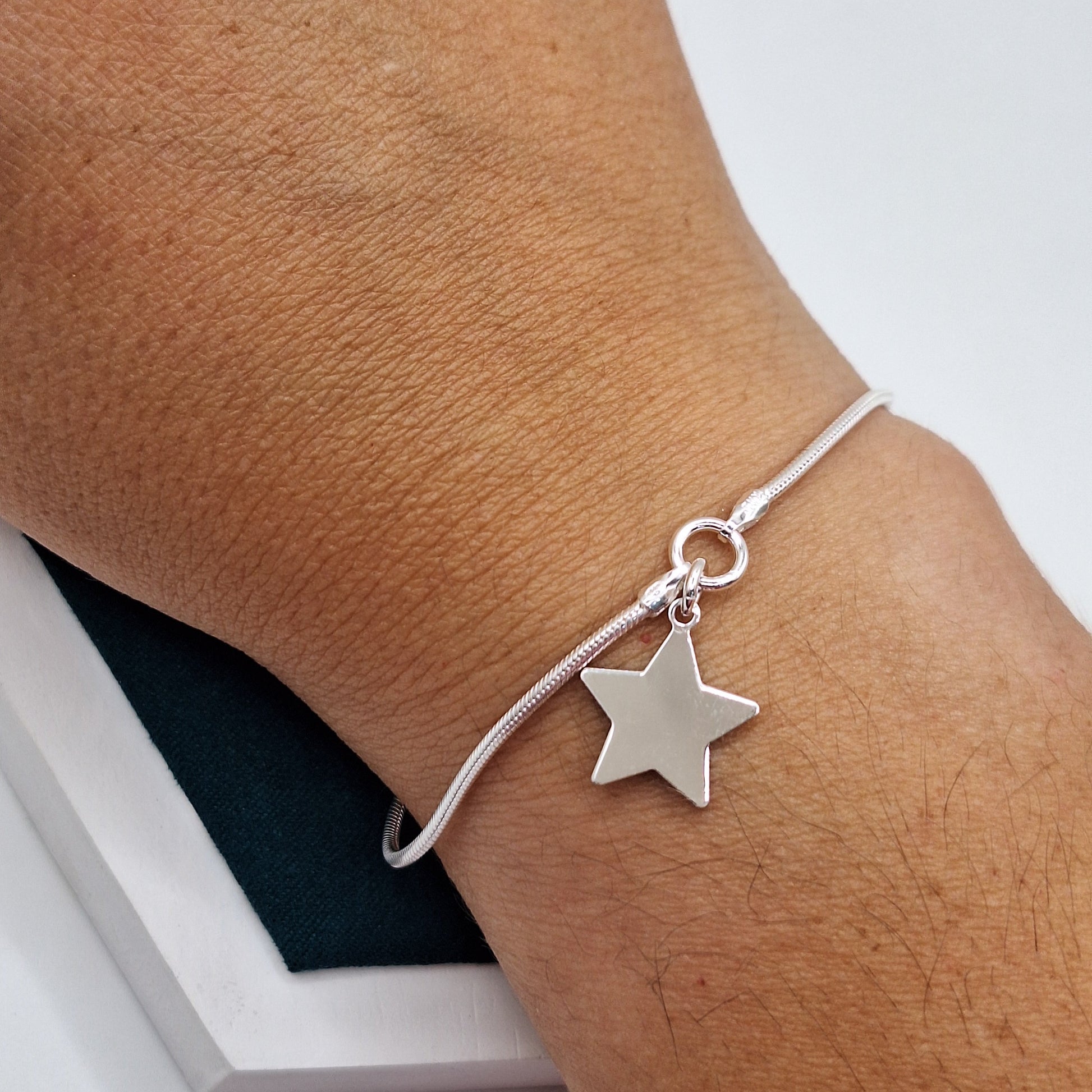 Pulsera de cordón "cola de ratón" formada por dos partes, en medio encontramos una argolla en a cual puede colgar una estrella o un corazón grabable.